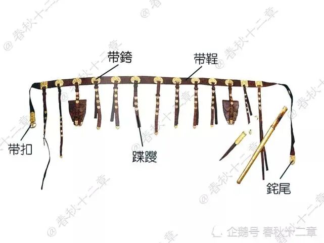 虽然这些名称今天听起来较为陌生甚至拗口,但从现存实物中我们能看出,这一时期的蹀躞带已与今天所用的腰带有了不少相似之处,同时很好地解决了随身杂物的携带问题。![]()
