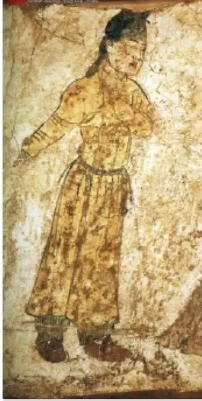 着蹀躞带的仕女《华妆仕女图》局部唐代(公元618-907年节愍太子李重俊墓出土壁画![]()