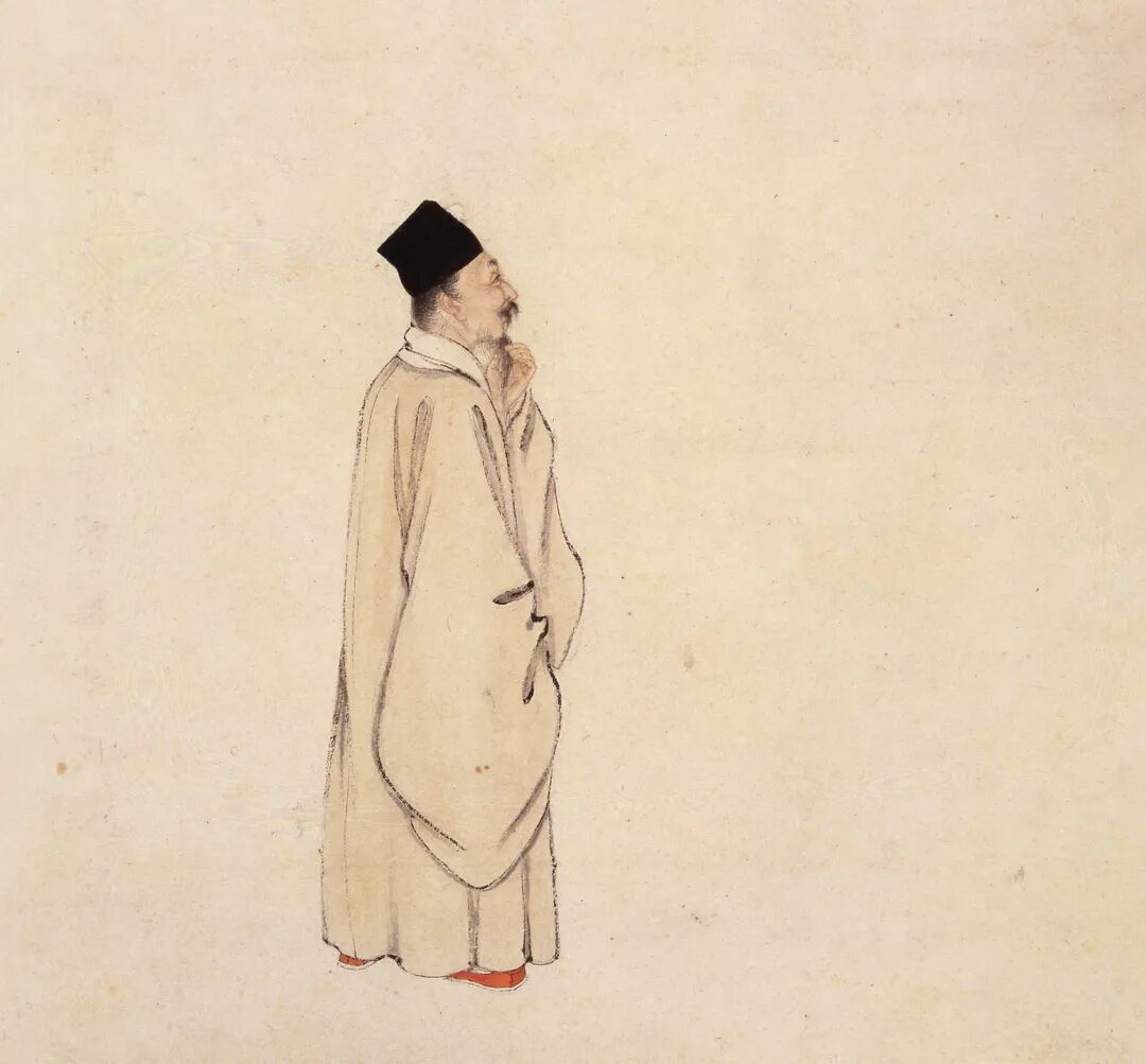 明朝中后期,欧洲绘画艺术传入中国,给了中国画家很大的启发,中国画家开始吸收西方绘画的营养,将其与中国绘画材料技法相融合。这无疑使得肖像人物画在原有的气韵生动基础之上,又增添了几分写实性,增强了绘画作品的立体感。纵观中西绘画艺术领域,无论是在中国还是在欧洲国家,肖像人物画都占有十分重要的地位。但两者仍然存在不同之处,如肖像人物画的绘画材料、技法、画风及题材不尽相同。从构图层面分析,中国传统绘画的创作深受中国古代文化思想的影响,是画家思想情感的物化,画家更注重画面的全局性,而画面中的焦点透视、散点透视等西方绘画的创作观念是不存在于中国传统绘画作品中的。尤其是长幅画卷,更加强调个人情感与客观世界的统一。所以明清的肖像人物画没有共同的焦点透视,是超越了时间和空间的表现。但是因为欧洲油画画风传入中国,中国画家的艺术创作手法也受到了很大的影响,有些画家开始摒弃中国的传统绘画观念,重视欧洲油画中明暗处理、透视效果等。于是,中国传统绘画在技法上较先前开始有了变化,可谓是融入了当时的时代气息和时代精神。总体而言,明清时期的肖像人物画可划分为两种风格样式:其一是沿袭了唐宋以来的绘画风格,以“摹古”为宗;其二是打破了传统的绘画形式,从传统绘画中提炼出写意白描画法,如李公麟的白描和梁楷的水墨简笔人物。自此,人物肖像绘画有了新的突破,开启了一种全新的肖像绘画的风格面貌。