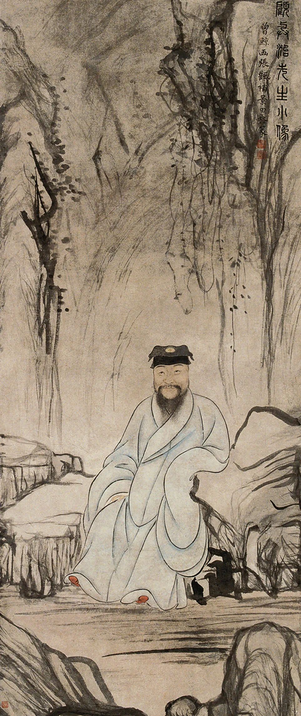 明 曾鲸、张风 顾梦游像 纸本设色 105cm×45cm