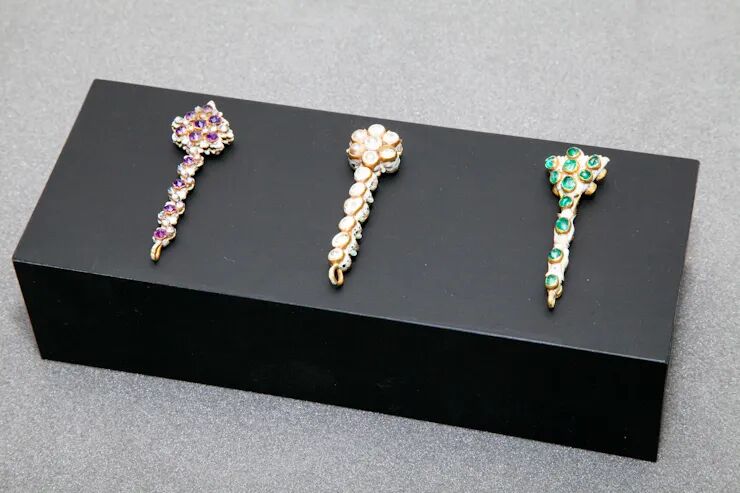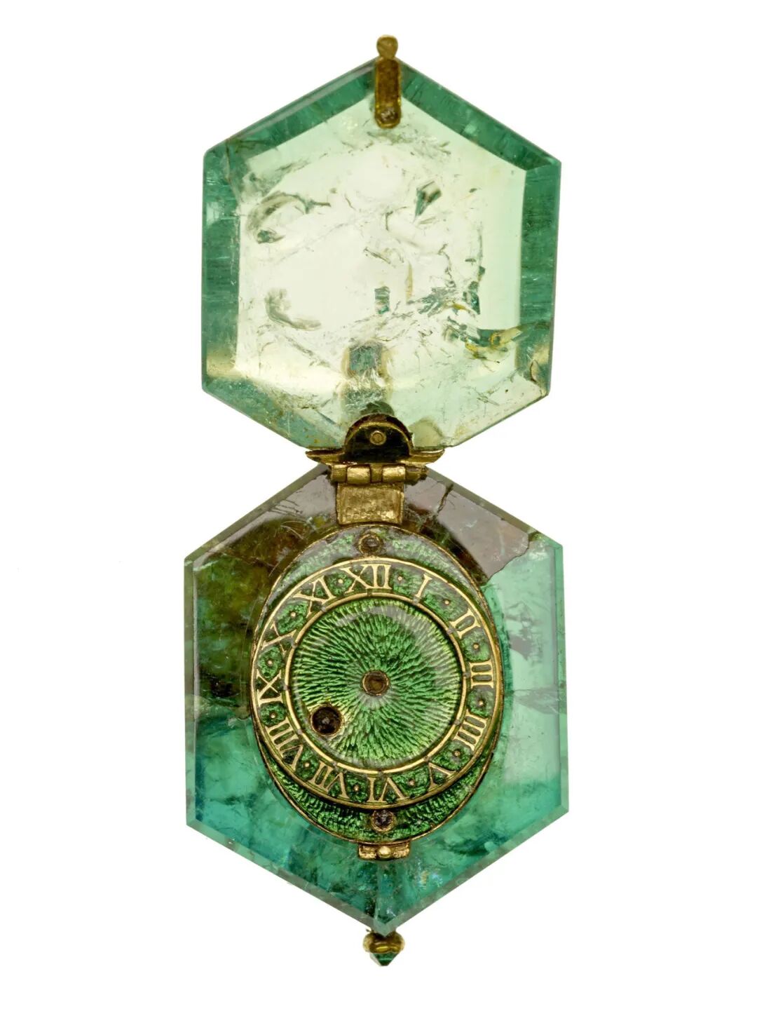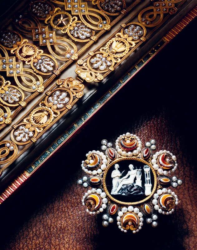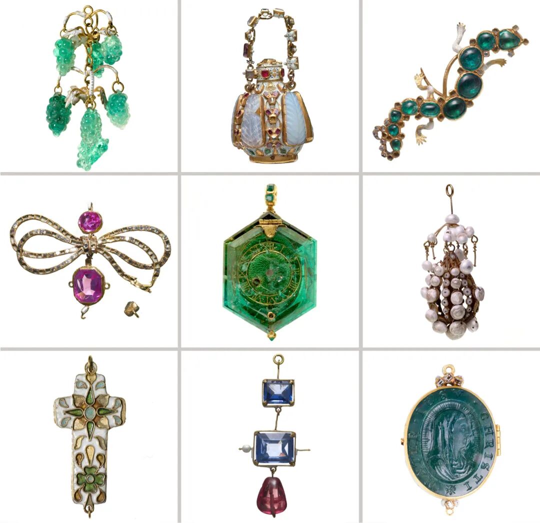 这批珠宝中,最引人瞩目的藏品包括:一只17世纪制造,镶嵌在整块祖母绿晶石里的怀表;一只16世纪黄铜打造的可以显示日历、小时的闹表;以及大量伊丽莎白时期的宝石雕刻,绝大多数藏品都是那一时期的珍品。
