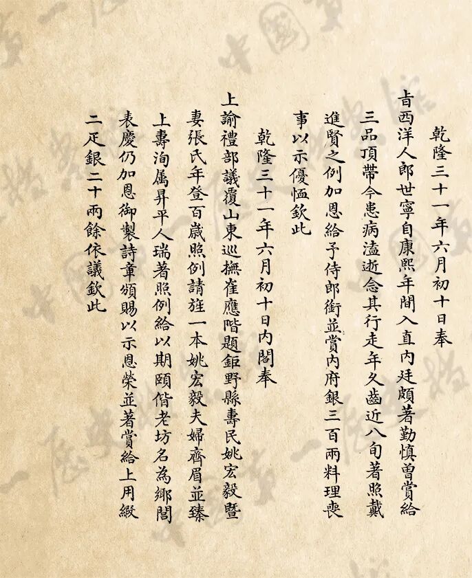 郎世宁,字若瑟,意大利人,在华生活50余年,是历任康熙、雍正、乾隆三朝的宫廷西洋画师,深受皇帝的青睐和赏识,在众多宫廷画师中无疑是一位具有影响力的代表人物。让我们通过清宫档案,了解郎世宁从雍正元年(1723年)到乾隆三十一年(1766年)这段时间里的人生经历。