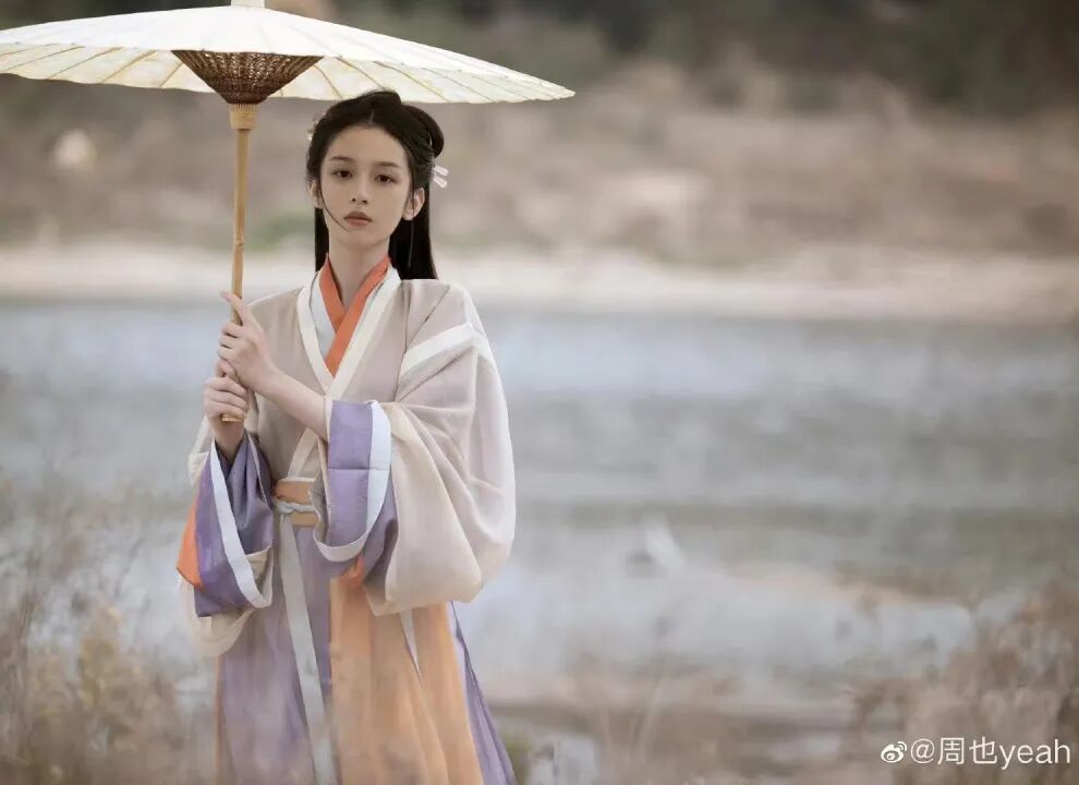 周也妹妹的那套出圈的汉服写真穿的就是晋制。