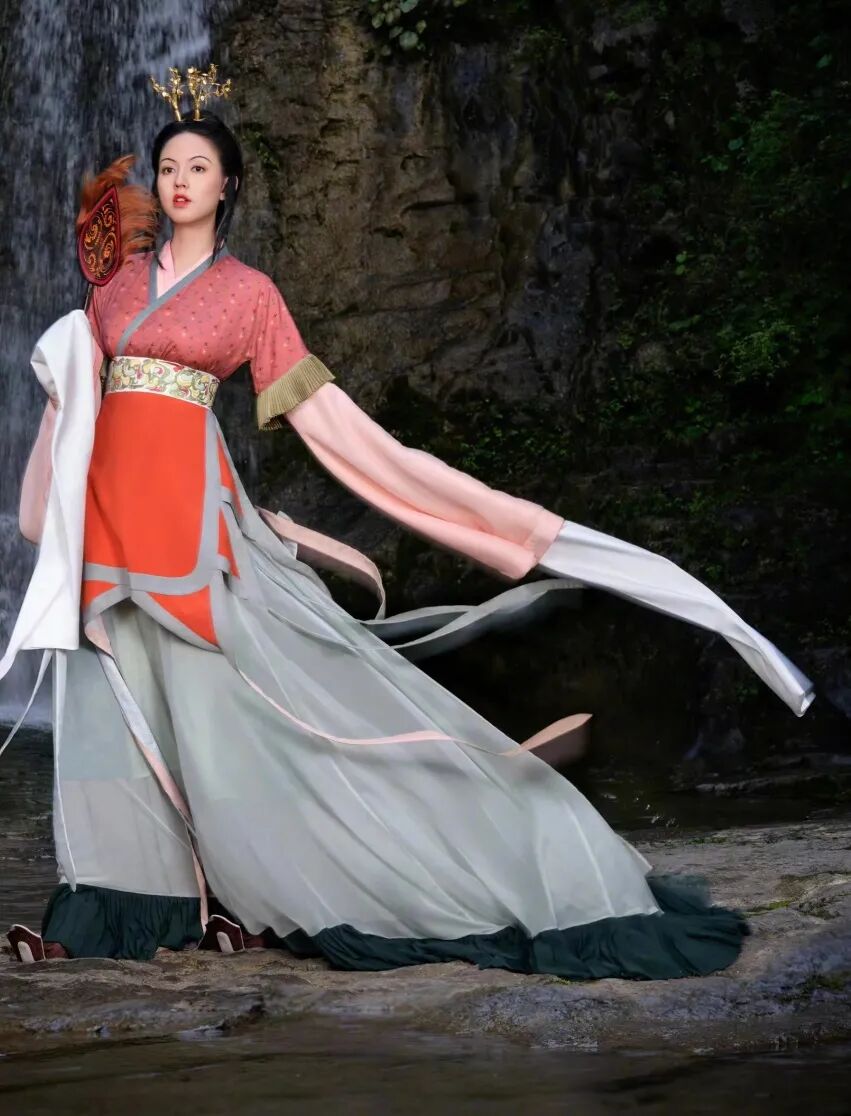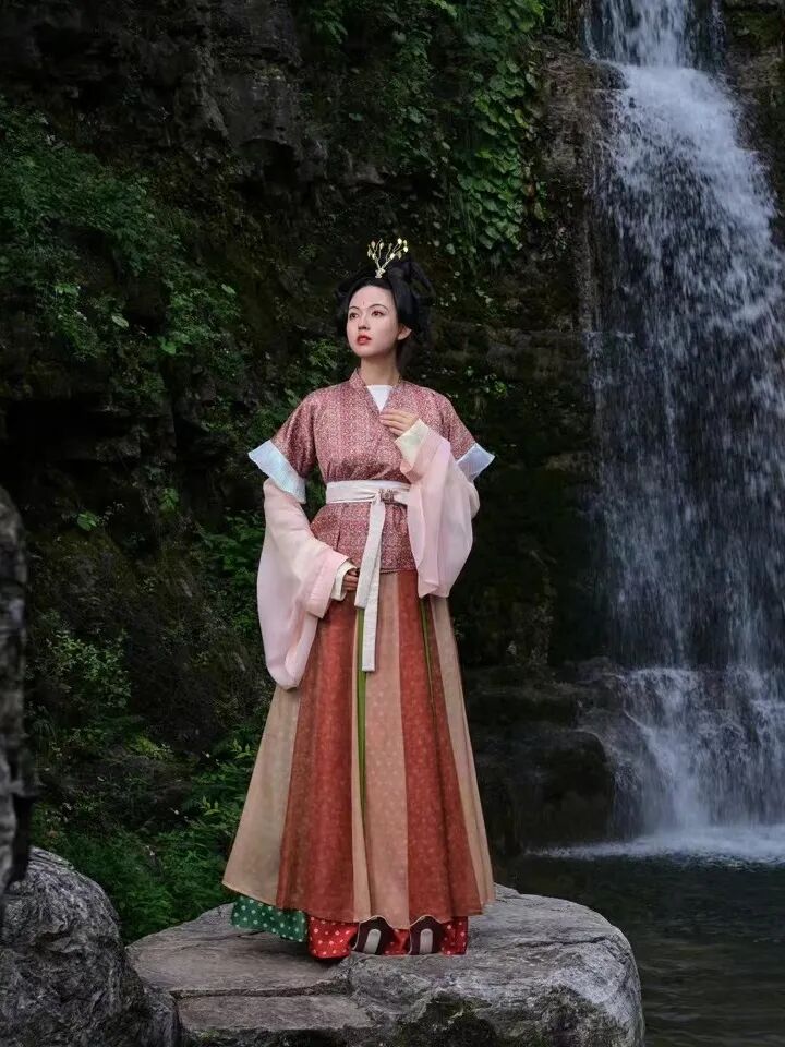如果你看到一个女孩身穿交领上衣和长长的裙子,裙边或衣服袖口有荷叶缘边,整个人看起来仙气又飘逸,没错了,她穿的妥妥的是晋制汉服。