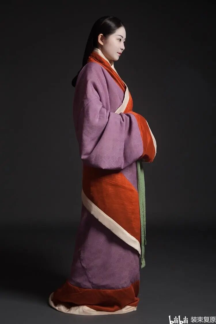 但是到了晋朝,长长的直裾和曲裾逐渐淡出,上襦下裙的穿法流行,襦有系带,不管是衣掩裙(上衣下摆盖住裙头)的穿法还是裙掩衣(上衣扎进裙子)的穿法,都可以展露腰身。
