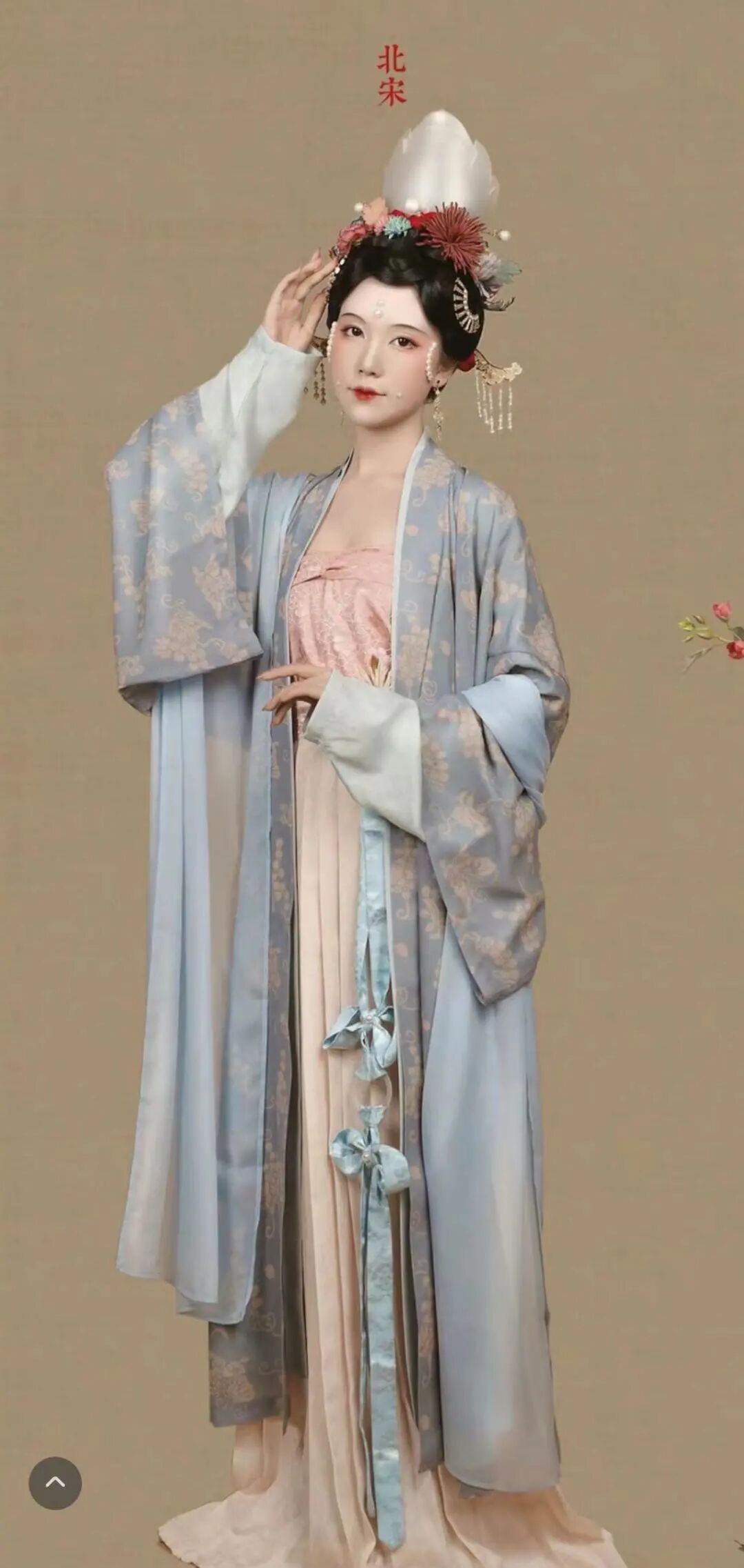 宋朝的服饰更加收敛,女子日常穿着的上衣多为直领对襟的衫/袄,除此之外女装还有一种特殊的常礼服,叫褙(bèi)子。