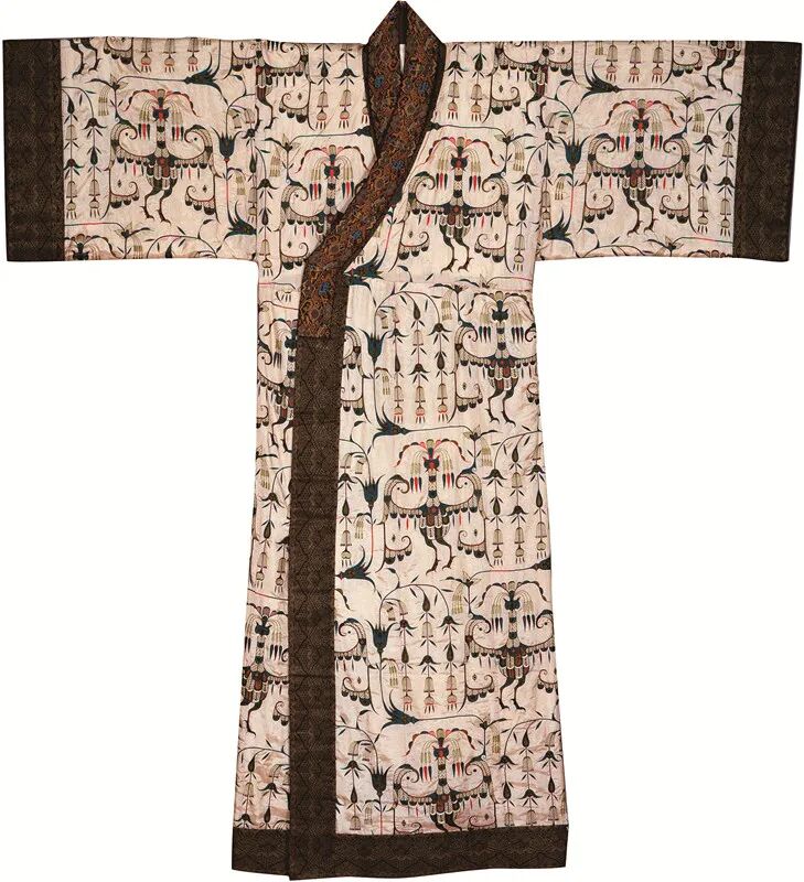 它外形上看起来跟宋制长衫很像,但是衣长长到脚面,衣服的腰身是直的。