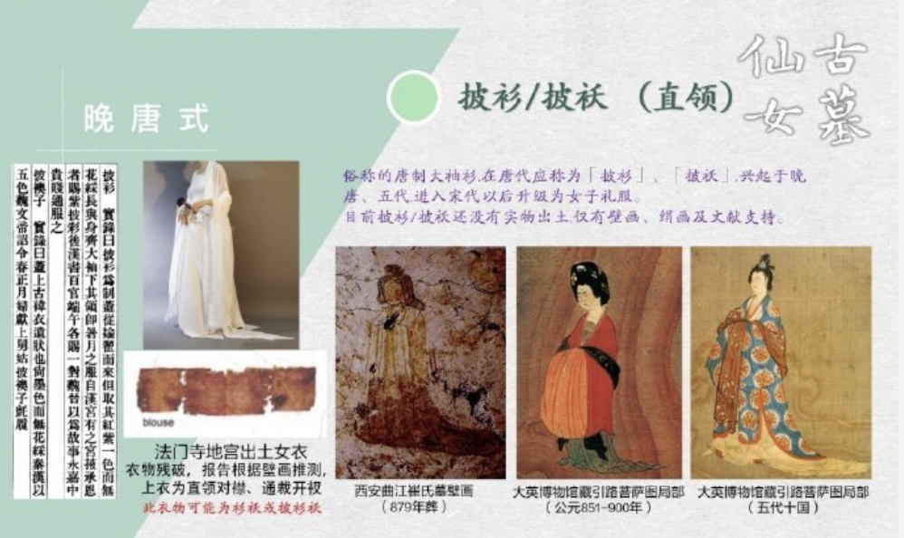 不过这种衣服目前还没有文物出土,现在做的复原款也基本都是根据壁画来做的,但这已经足够我们去领略披衫的魅力。
