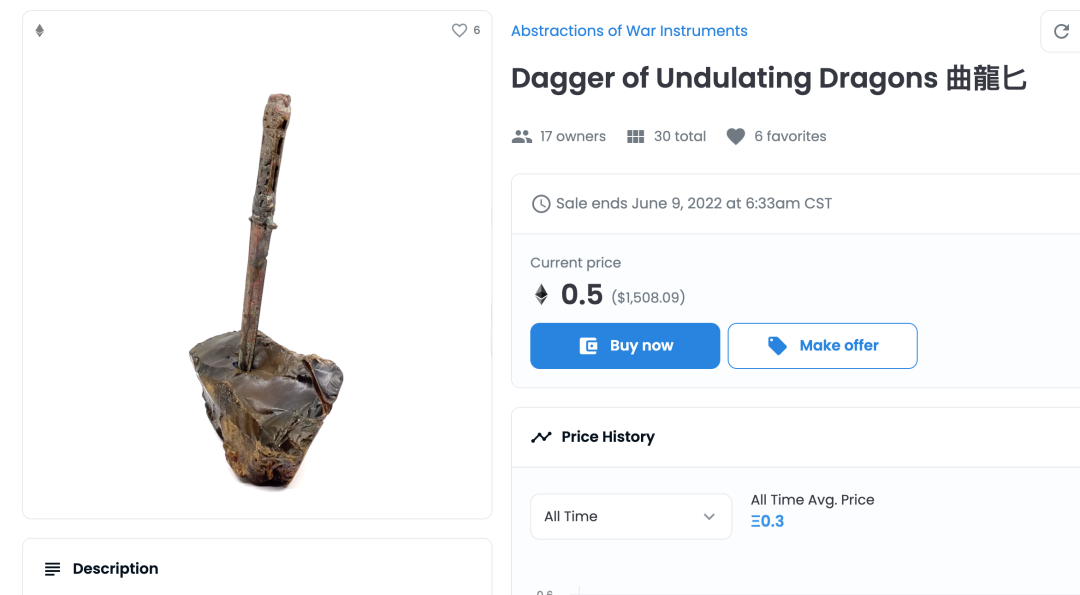 于是他把自己珍藏多年的战国青铜短匕拿出来NFT化,并挂在Opensea上售卖。