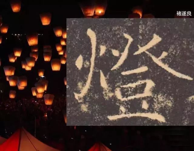 王羲之的结字经验,大大影响了后世。褚遂良将笔画放松,这个字仿佛漫天飞舞的孔明灯,又像一篇精美的散文,形散而神不散。