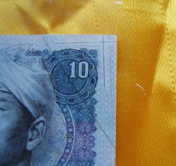 4、现在市场上有用来捆扎钱币的边角废印钞纸,造假者用边角纸粘贴在真币的某一边上,形成所谓的“福边”。