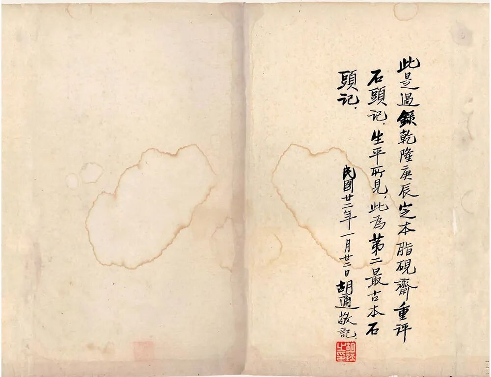 1933年胡适在《跋乾隆庚辰本〈脂砚斋重评石头记〉抄本》中曾断言:“凡最初的抄本《红楼梦》,必定都称为《脂砚斋重评石头记》。”
