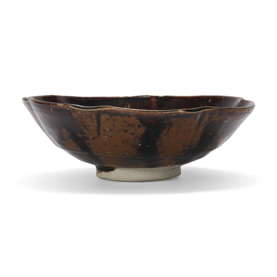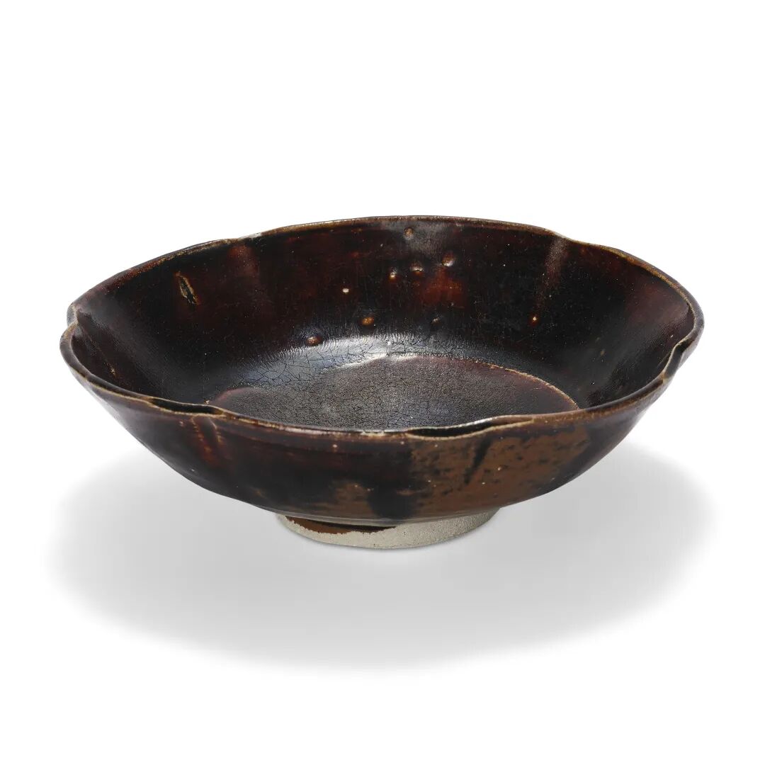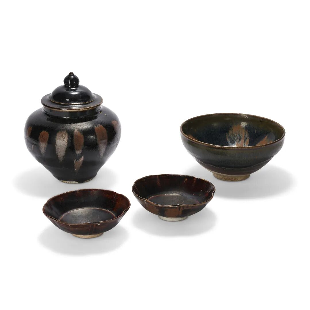 宋及以后 黑釉褐斑大碗、黑釉褐斑盖罐及仿漆器葵口碗一对共四件