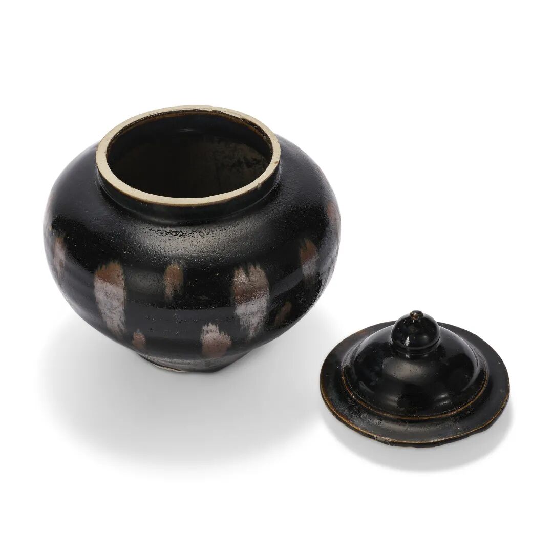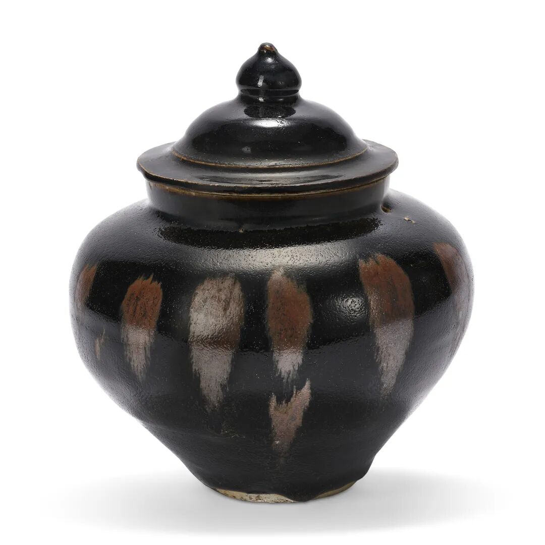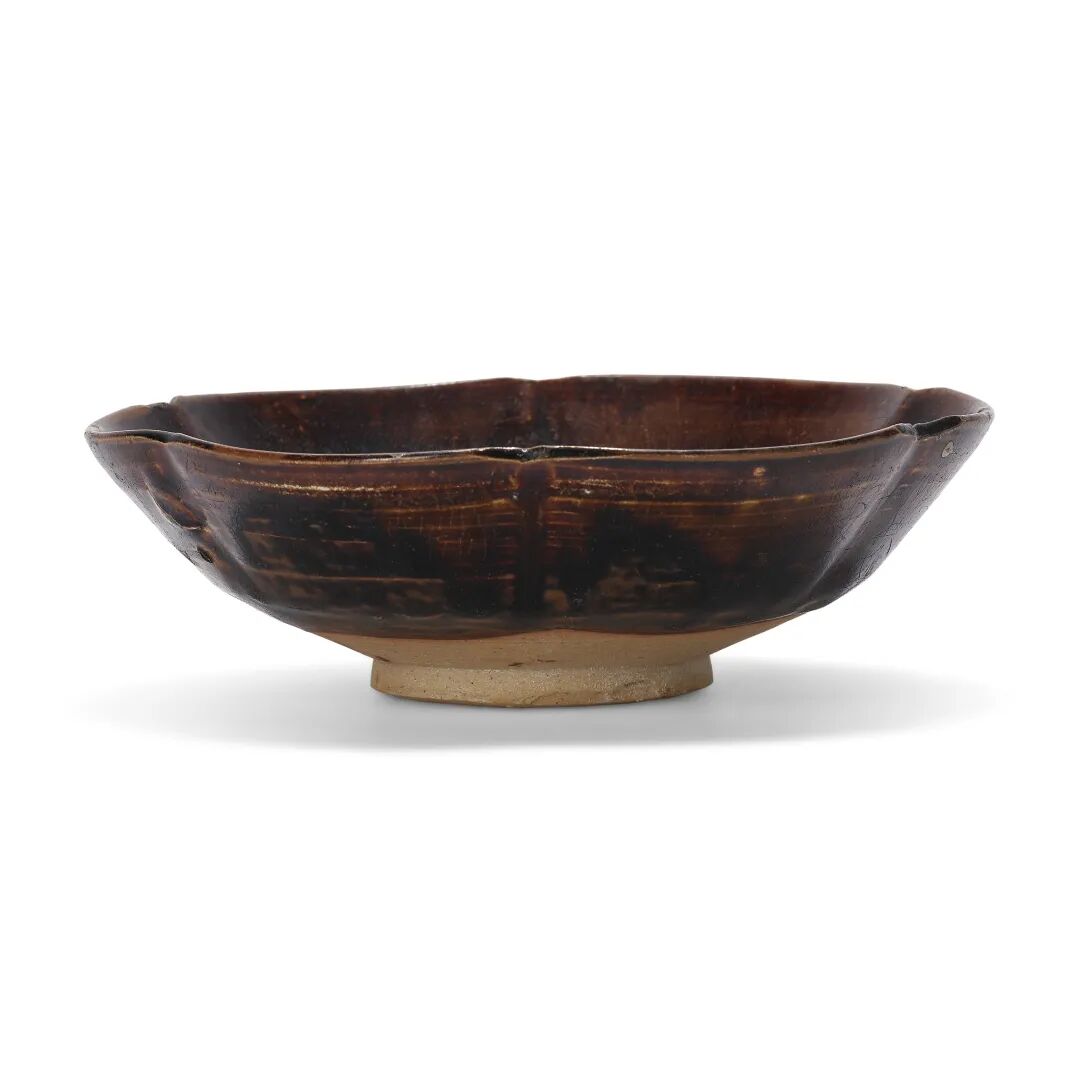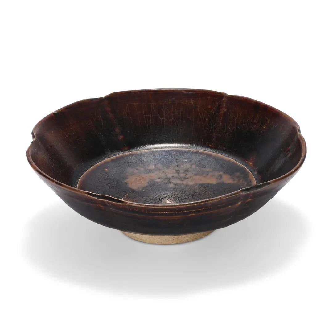 宋及以后 黑釉褐斑大碗、黑釉褐斑盖罐及仿漆器葵口碗一对共四件
