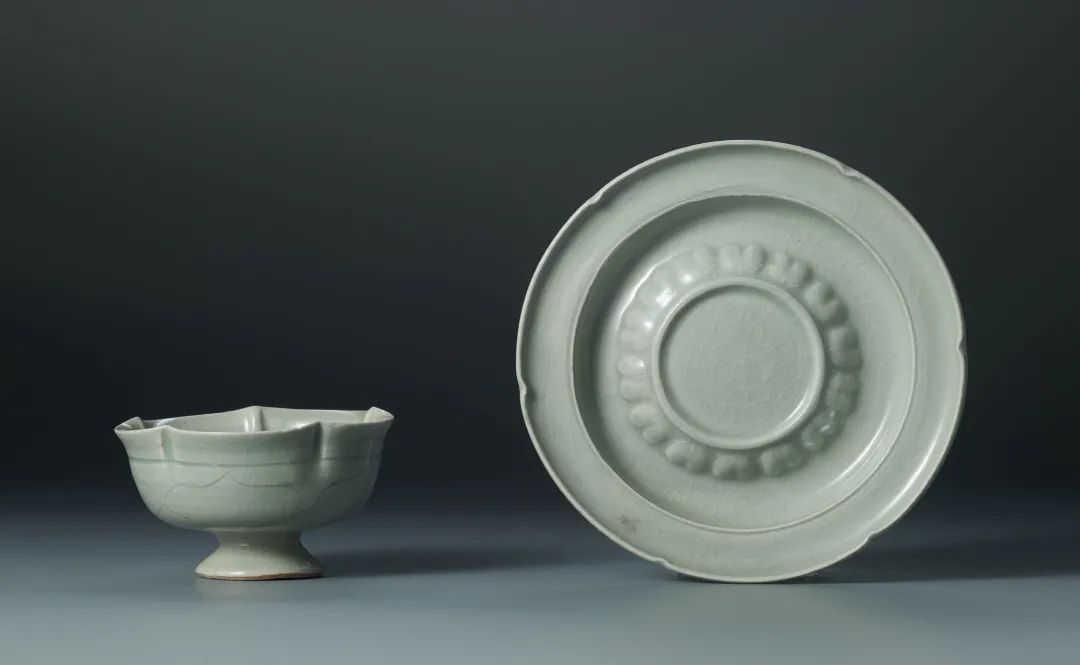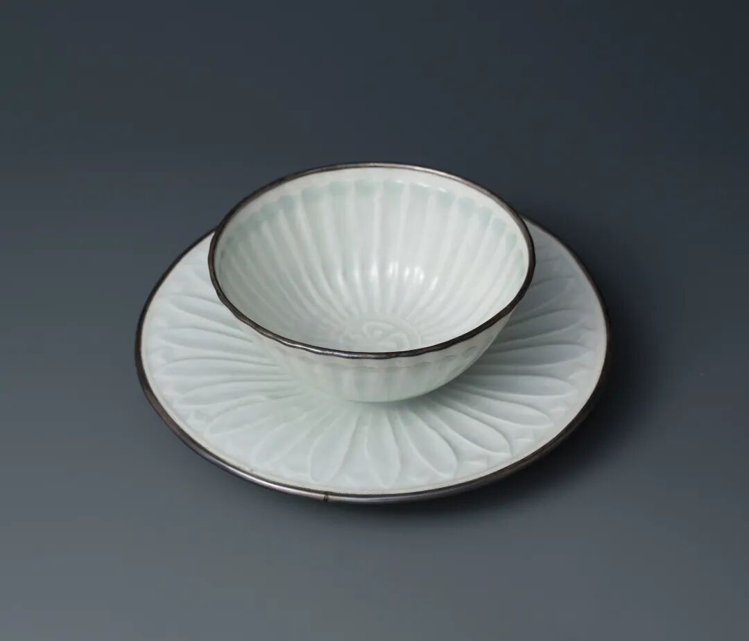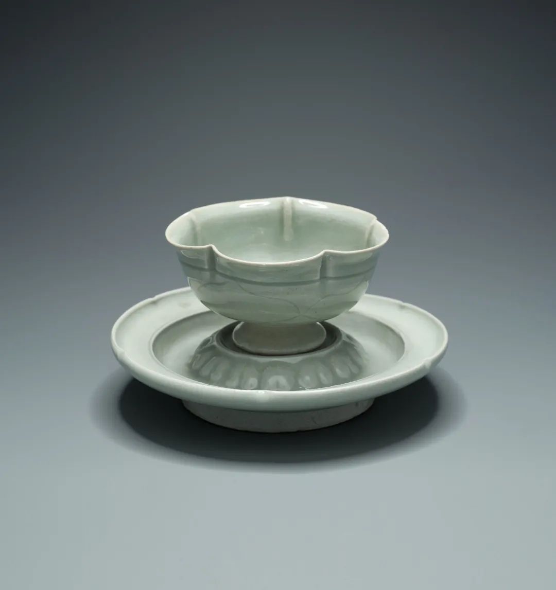 北宋 青白瓷刻花蓮瓣紋盃及盃托