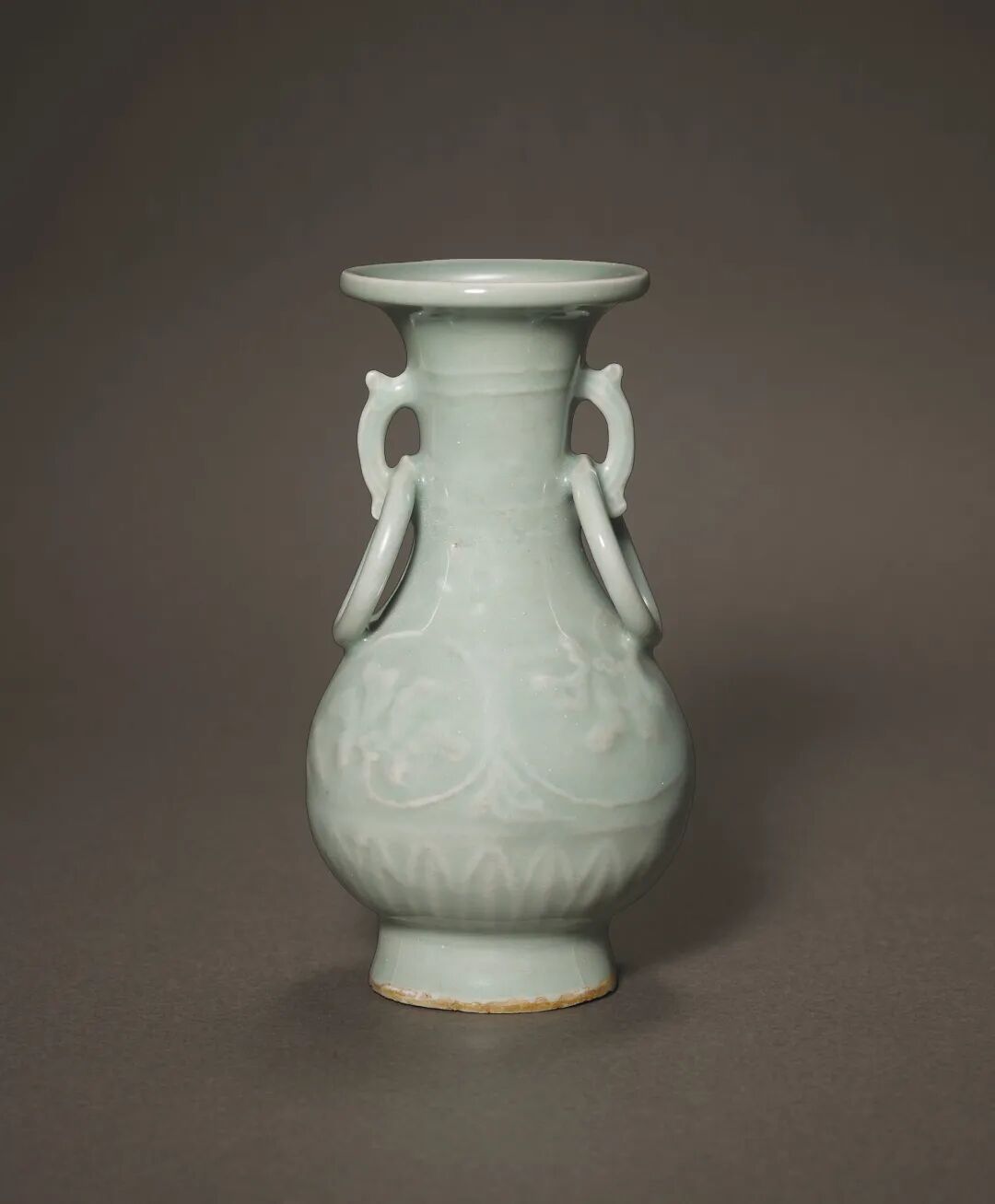 南宋 龙泉窑粉青釉印牡丹纹双环瓶