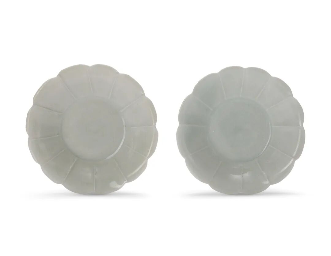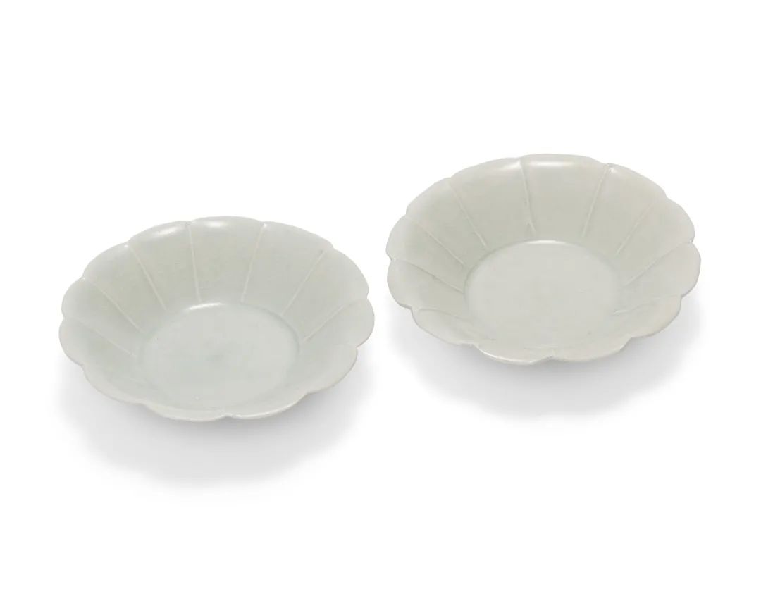 宋 白釉花口小盘一对