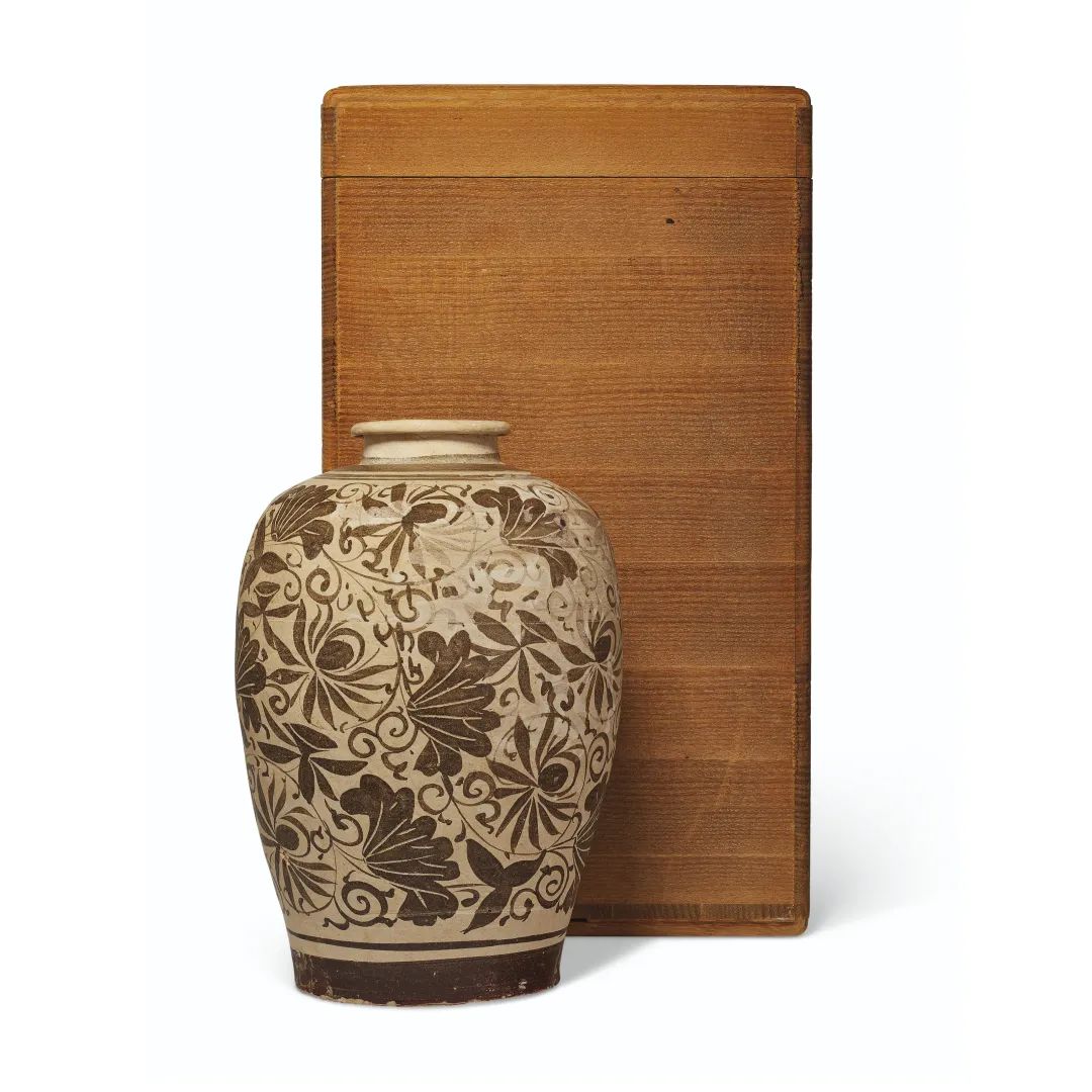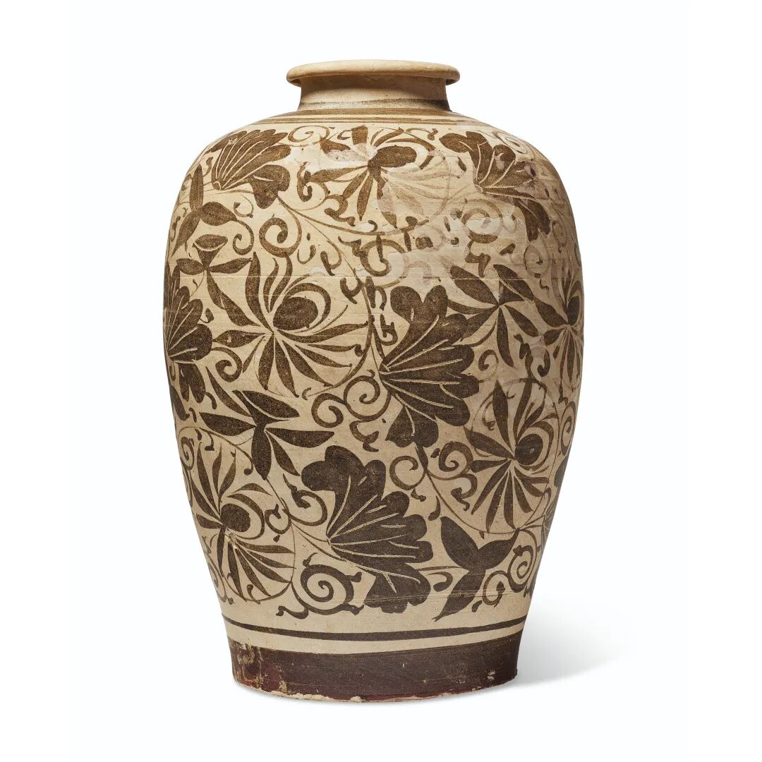 南宋 吉州窑白地黑花莲纹瓶