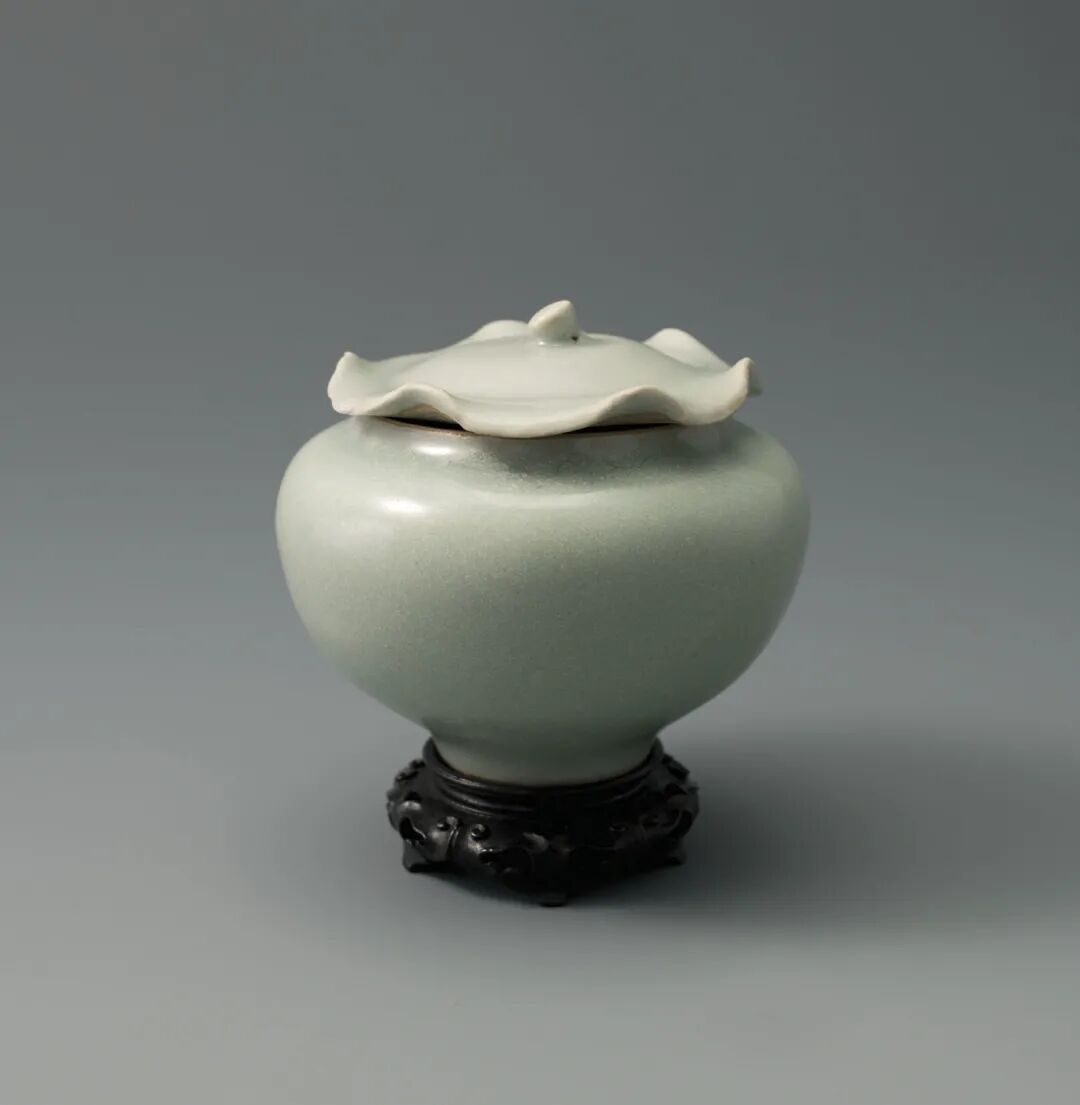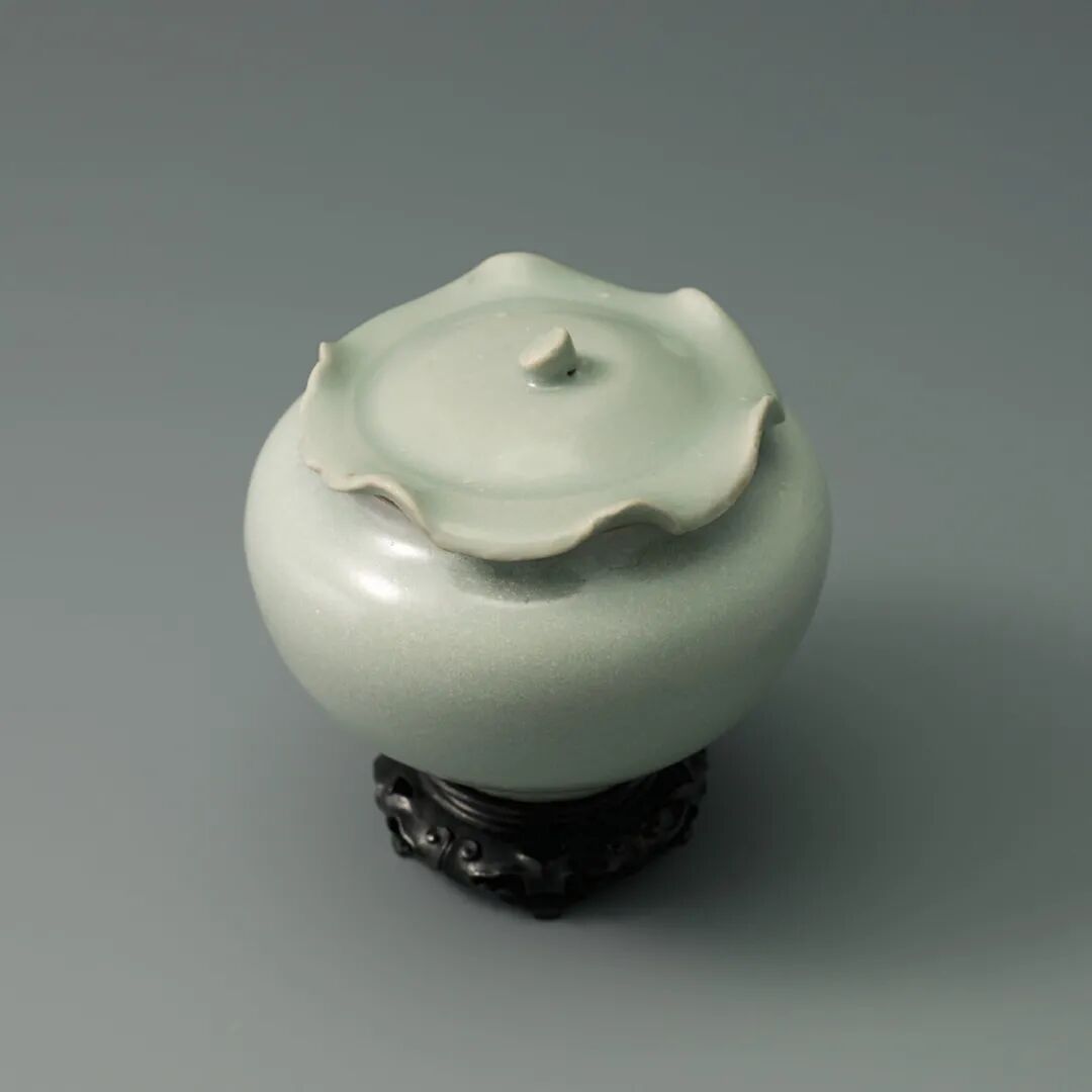 南宋 龙泉窑粉青釉荷叶式小盖罐