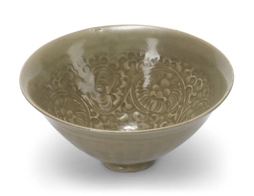 北宋 耀州窑青釉印花缠枝菊纹碗