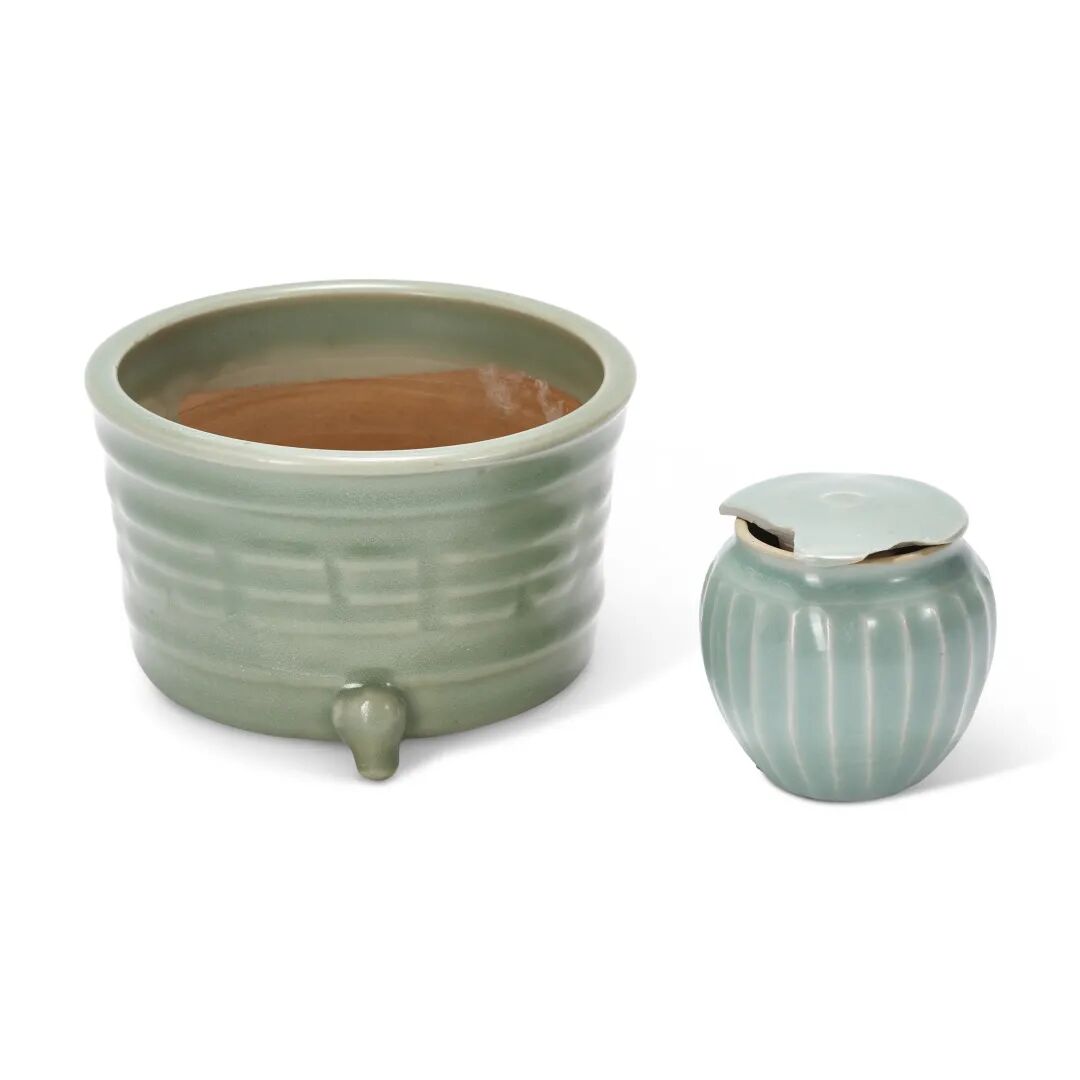 宋明 龙泉青瓷出筋盖罐 及