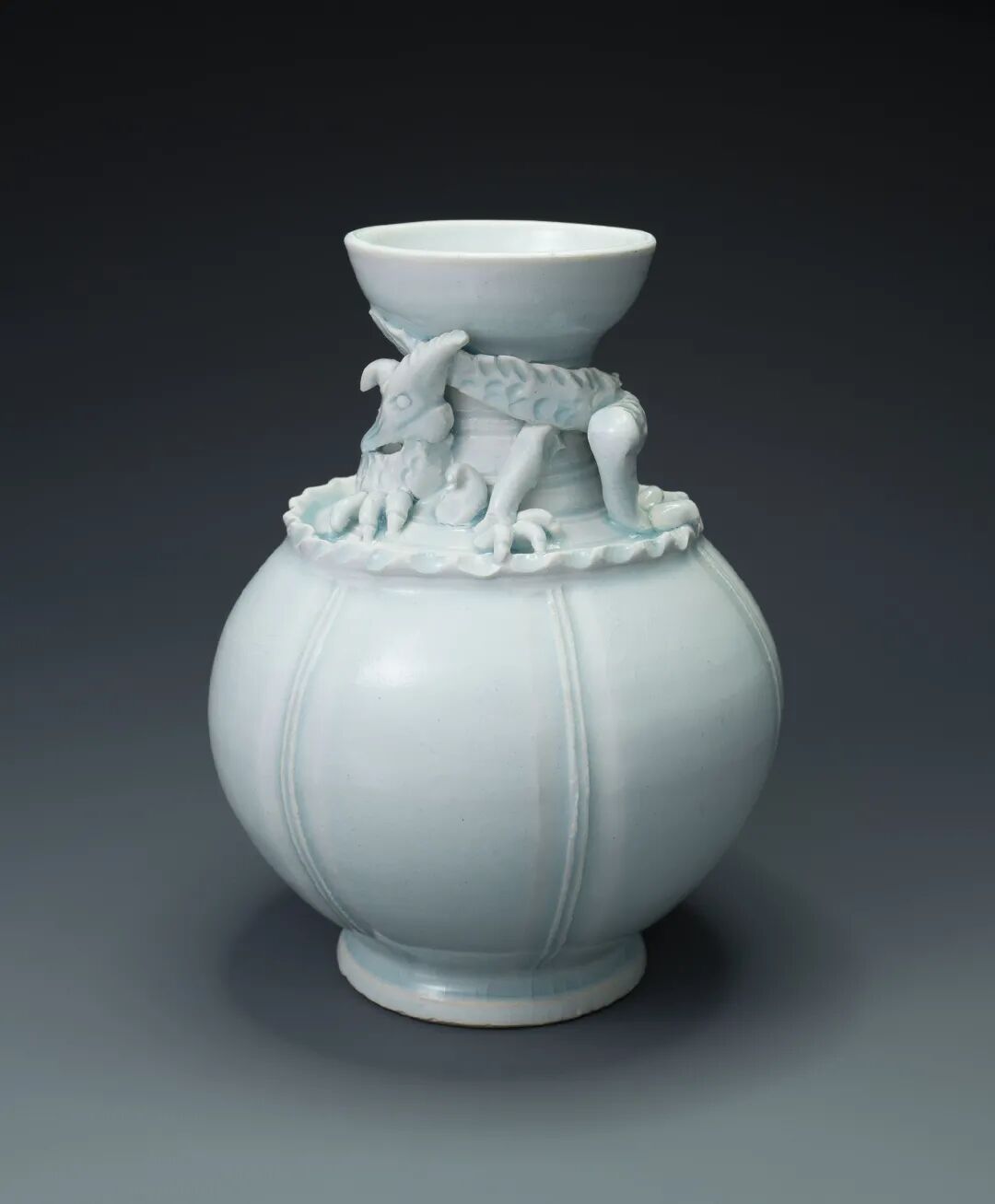 南宋 青白瓷瓜稜形盘龙瓶
