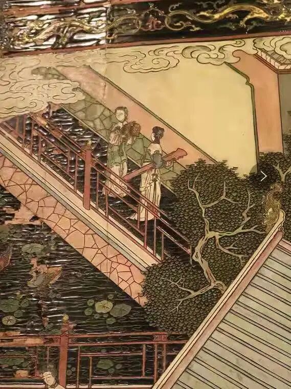 什么?这么灿烂夺目的画竟然是漆器?若说雕漆气质雍容而沉静,那么款彩便绚丽而灵动。连《髹饰录》的作者黄成都忍不住用“倩盼之美愈成焉”形容运用了金银的款彩作品。款彩究竟具有怎样的感染力,让人不由联想到《诗经》中古典美人的笑靥呢?