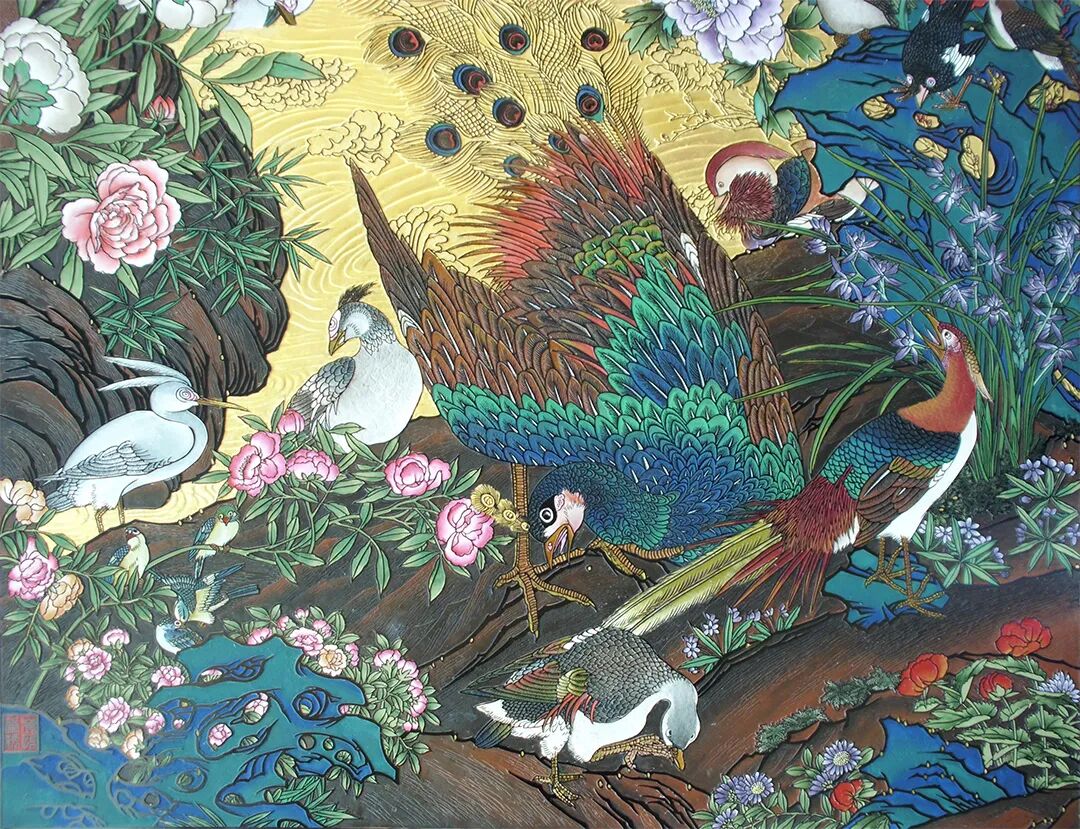 匠人运刀如行云流水,线条流畅、纤细优美,动植物栩栩如生,真像一副漆板上的工笔画!