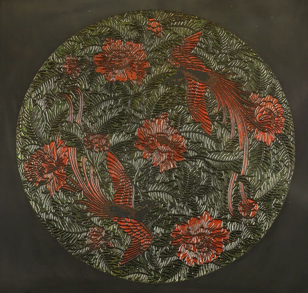 刻漆(刻纹、铲地):先用月牙刀沿着纸样的线条刻轮廓线,深浅要适度,刻至漆灰而止,因此款彩又称为“刻灰”“刻漆”。