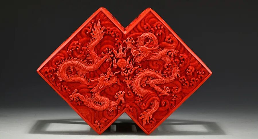 前两期介绍的犀皮漆、雕漆较多运用在日常生活的器具上,比如茶具、笔筒、盘、盒、罐之类;而款彩适宜远观,虽然也有箱匣和插屏,但多用于装饰大面积的空间,常作为屏风、门匾、对联等,运用在建筑装饰和家居陈设上。