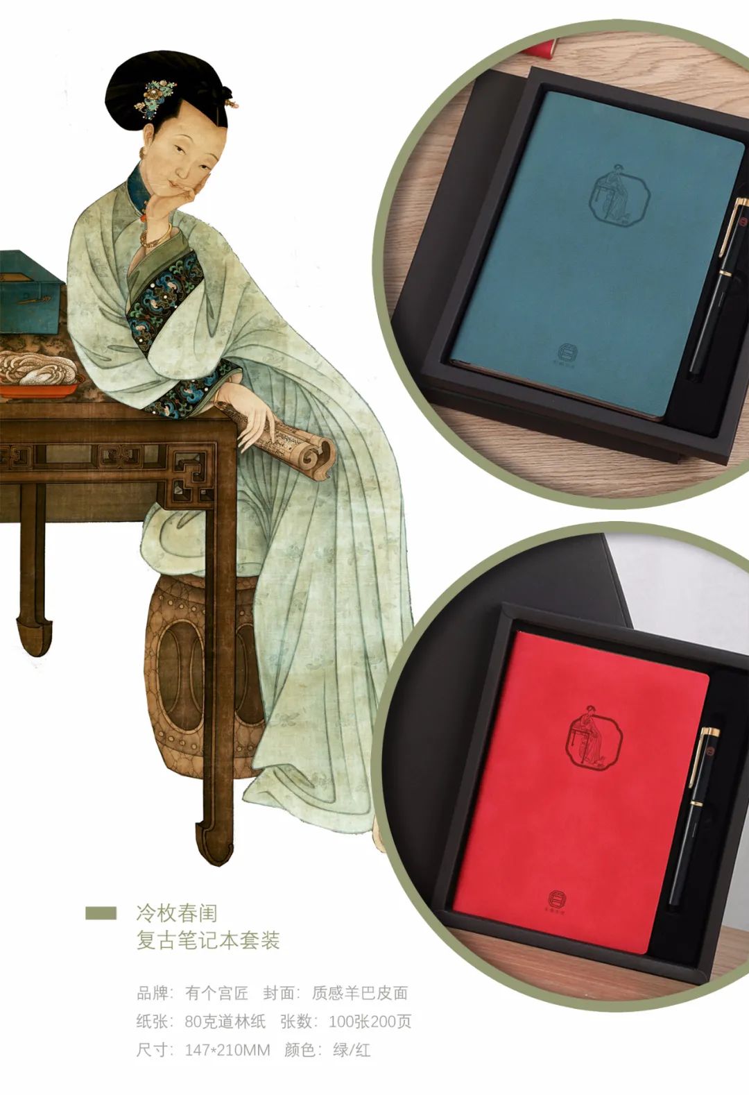 即日下单有好礼:获赠价值88元的冷枚春闺复古笔记本套装。《春闺倦读图》由“以画供奉内廷最久”的清朝宫廷画家冷枚所绘,这款笔记本套装汲取了《春闺倦读图》中的优雅情趣,颜值爆表。内页穿插12张清人绘《雍正十二美人图》,古朴典雅。同时,套装含圆珠笔一支,包装精美,送人、自用都很有逼格。![]()