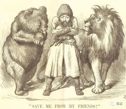 在克里米亚战争之后,俄国急于挽回自己在欧洲战场的损失,同时又需要为农奴制改革后俄国工业化发展开辟新的原料产地和销售市场,因此俄国迅速向中亚南部推进。从1864到1876,十多年间俄国完成了对中亚南部三汗国的征服。俄国陈兵阿富汗边界,目标矛头直指阿富汗与英属印度。