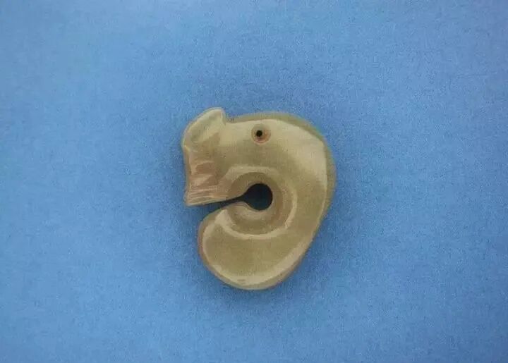 红山典型代表器——勾云玉器。赛克勒先生旧藏的这件虽只已成鸡骨白,且只有4.8公分。除了中间上头的小孔有损外,其余极为完整。难得!