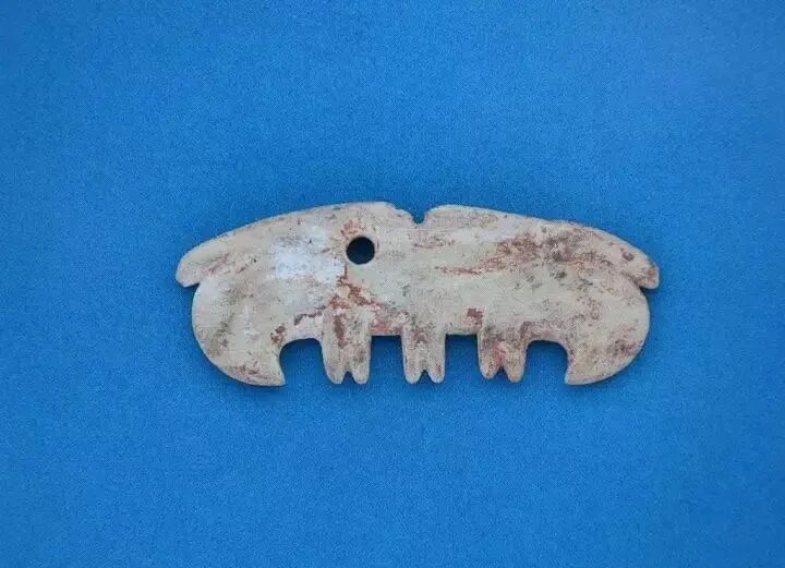 玉器表面仍留有朱砂痕......此件红山勾云玉器也是赛克勒早期从巴尔(Bahr)先生手里购得。