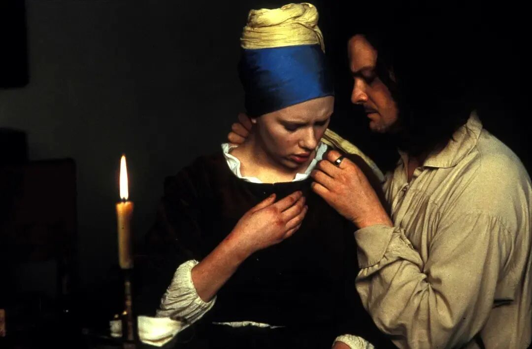 约翰内斯·维米尔《戴珍珠耳环的少女》,1665年作《戴珍珠耳环的少女》是荷兰黄金时代巨匠约翰内斯·维米尔(Johannes Vermeer)的代表作,这样一幅看似不起眼的小画,却使得全世界的人为之痴醉。由于人们如此喜爱这幅力作,有关于戴珍珠耳环的女孩的故事也有很多演绎,最出名的无疑是那个“灰姑娘的故事”。葛丽叶是一个家境贫寒的姑娘,应聘来到画家维米尔家做女佣。在画家的家里,葛丽叶第一次接触到奇妙的绘画世界,这些美妙的绘画唤醒了她潜在的艺术敏感。与此同时,维米尔也被葛丽叶的艺术天分和美好气质打动。葛丽叶迷恋上维米尔的艺术才华,也愿意为他付出一切,渐渐的葛丽叶也成为维米尔作品的一部分。