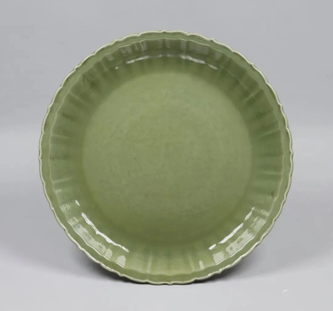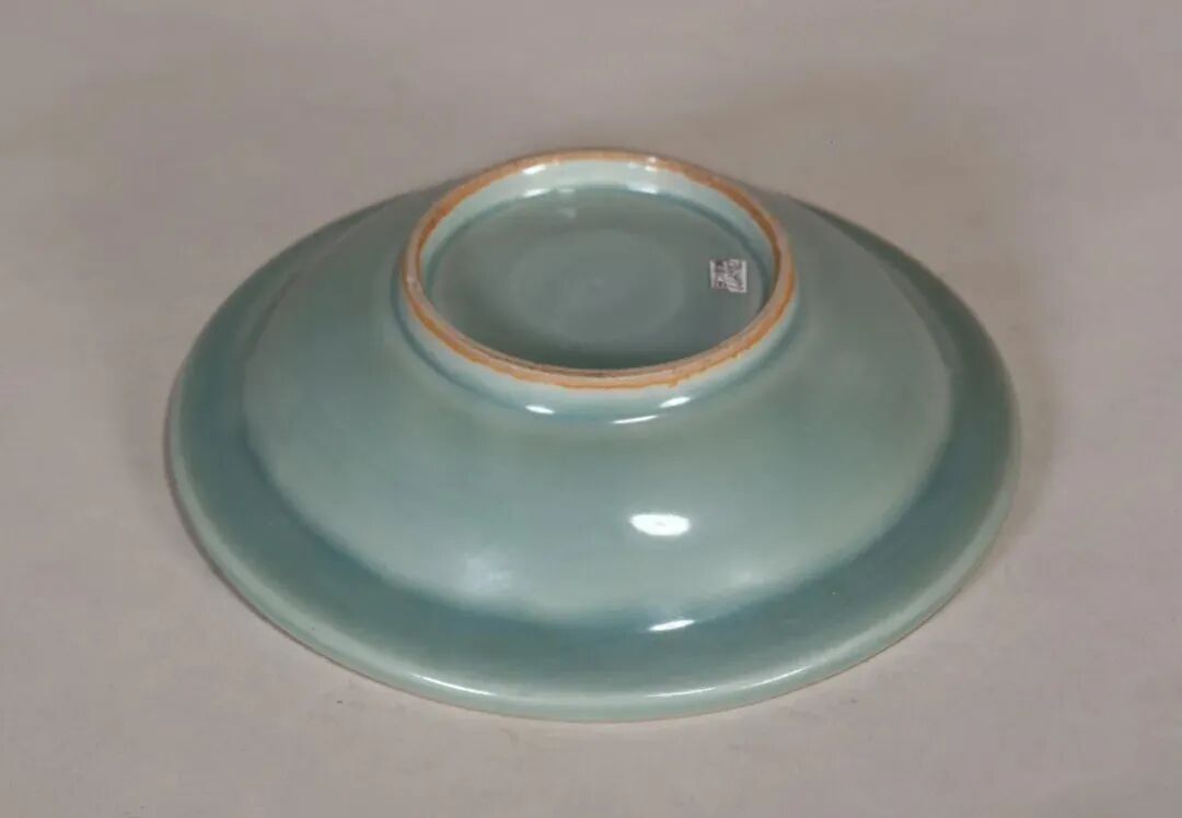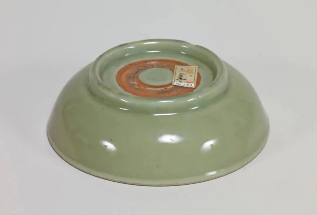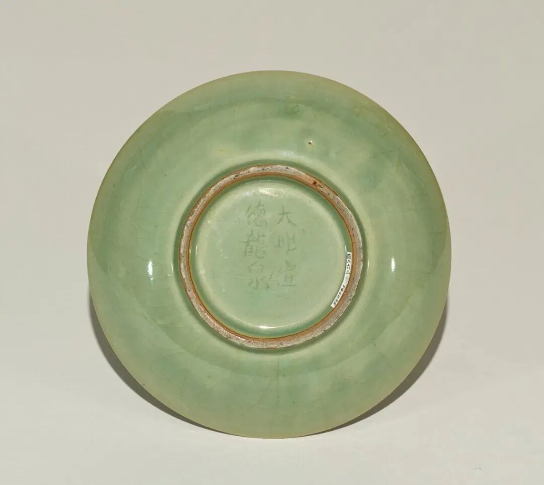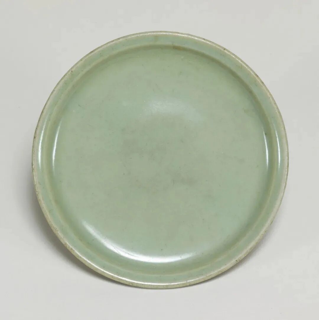 此器虽标注为“明”,其造型实为元代龙泉典型盘式。