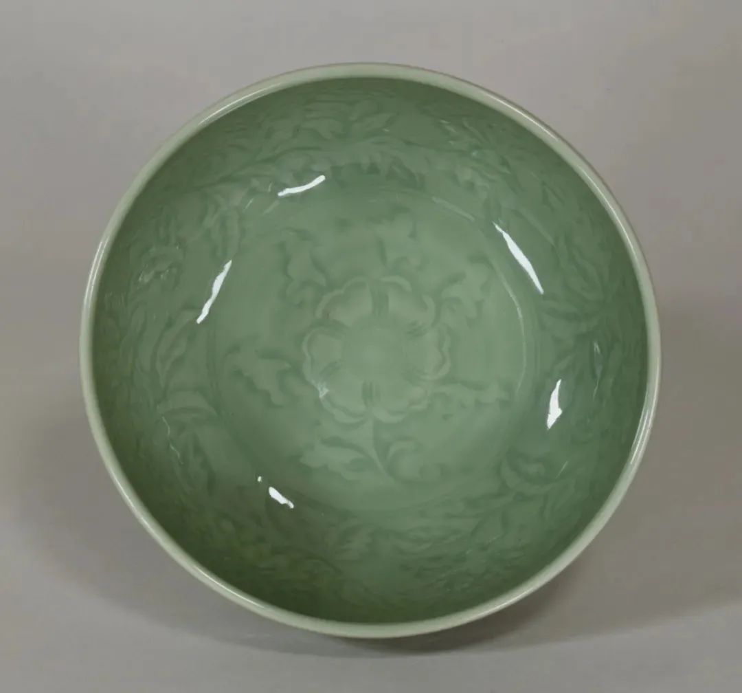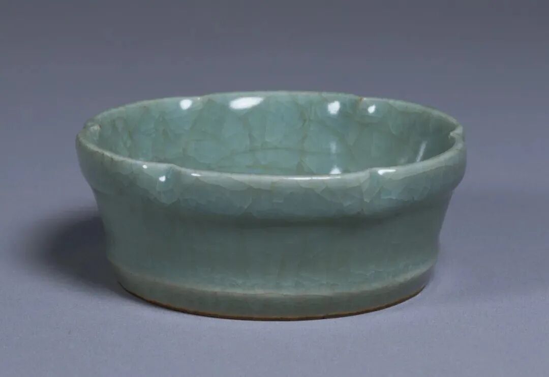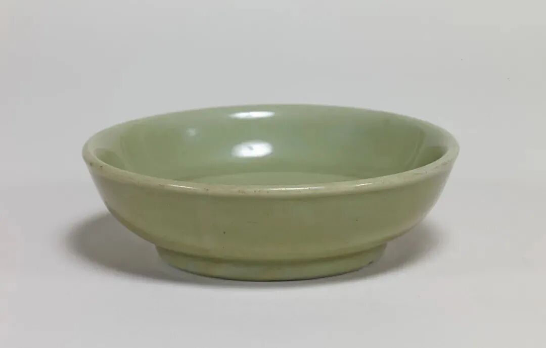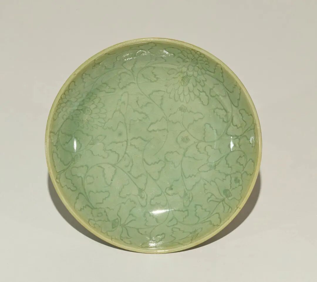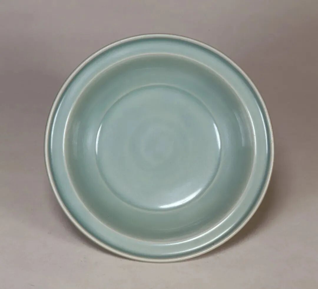 此器虽标注为“明”,其造型实为元代龙泉典型盘式。