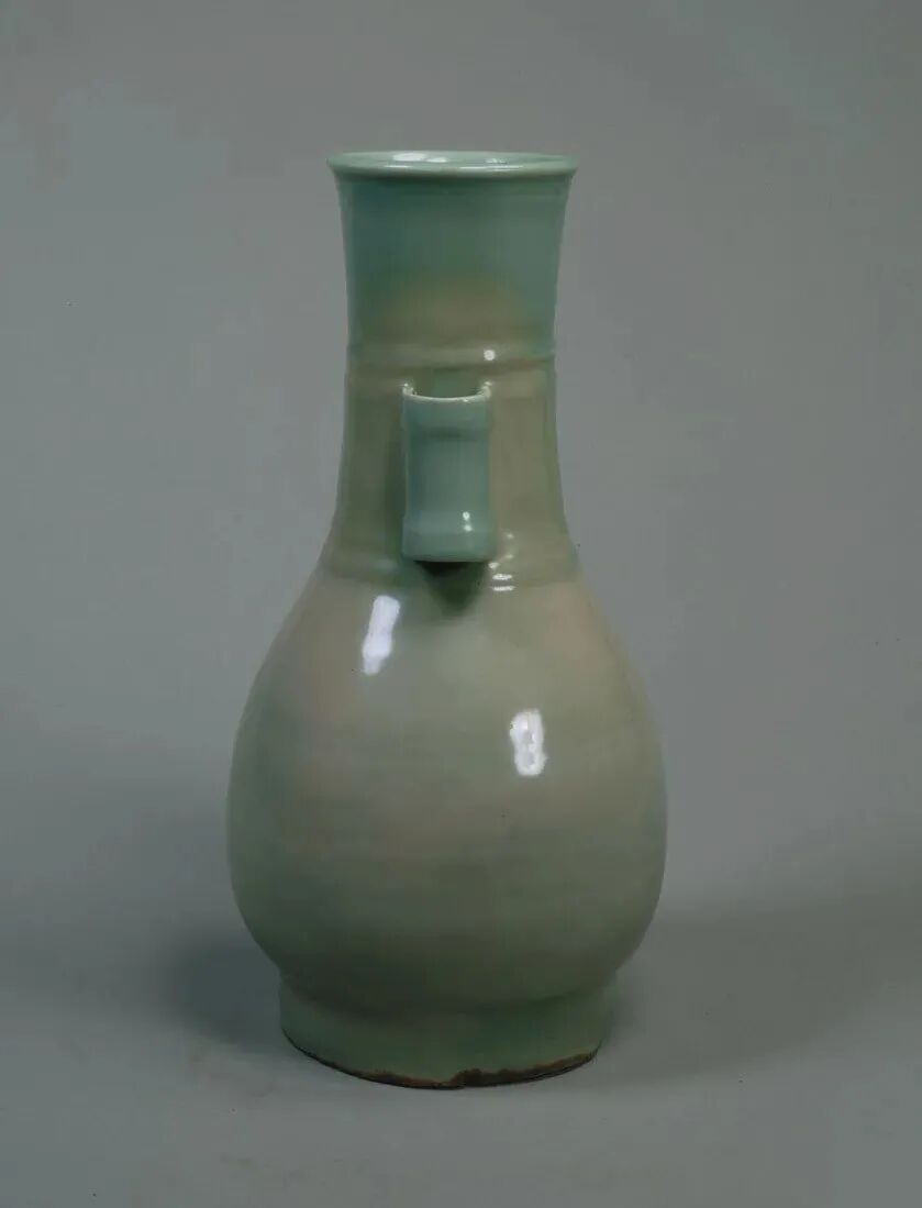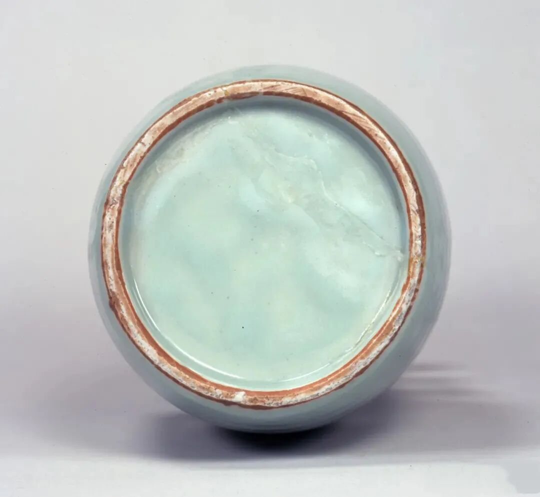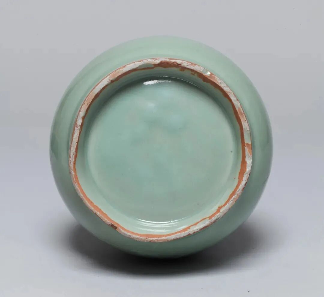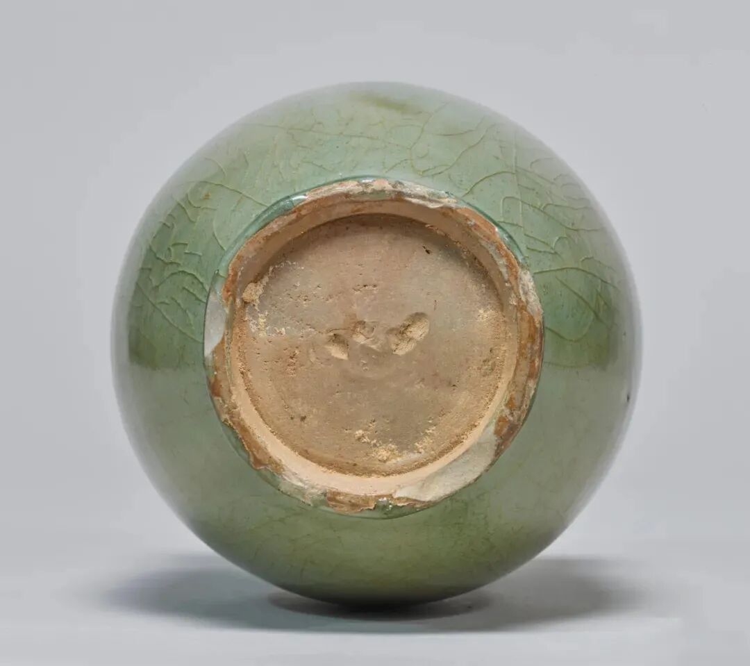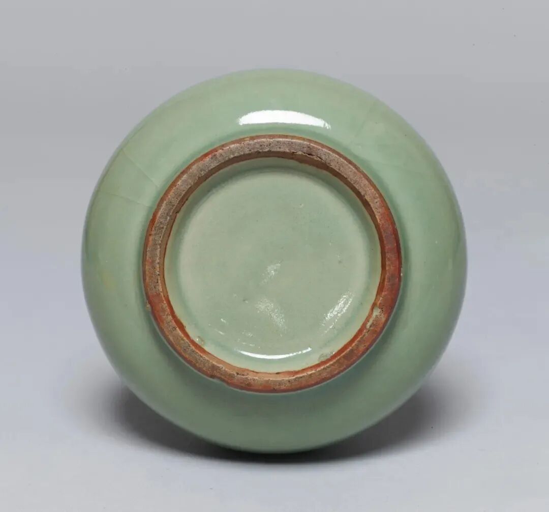 该器虽未标注年代,其时代特征鲜明,可视为元代龙泉烧制。其颈部中段以上被截去的现象,在土耳其伊斯坦布尔托普卡帕皇宫博物馆所藏的龙泉青瓷中亦多有所见,是当地根据本土饮食习俗及审美风尚对器物进行再加工和修饰所致,不过也有可能是被截去部分破损较严重所致。