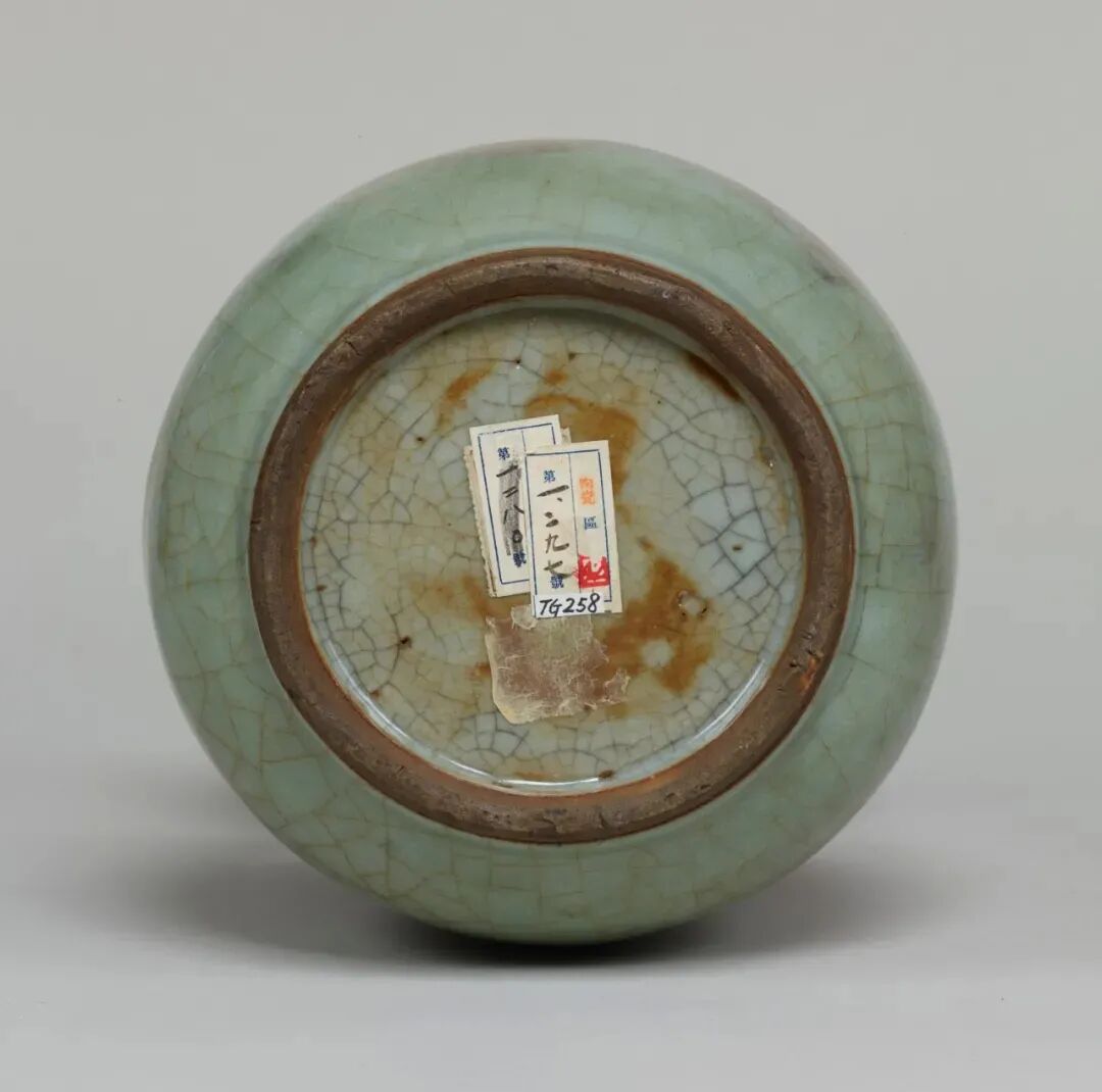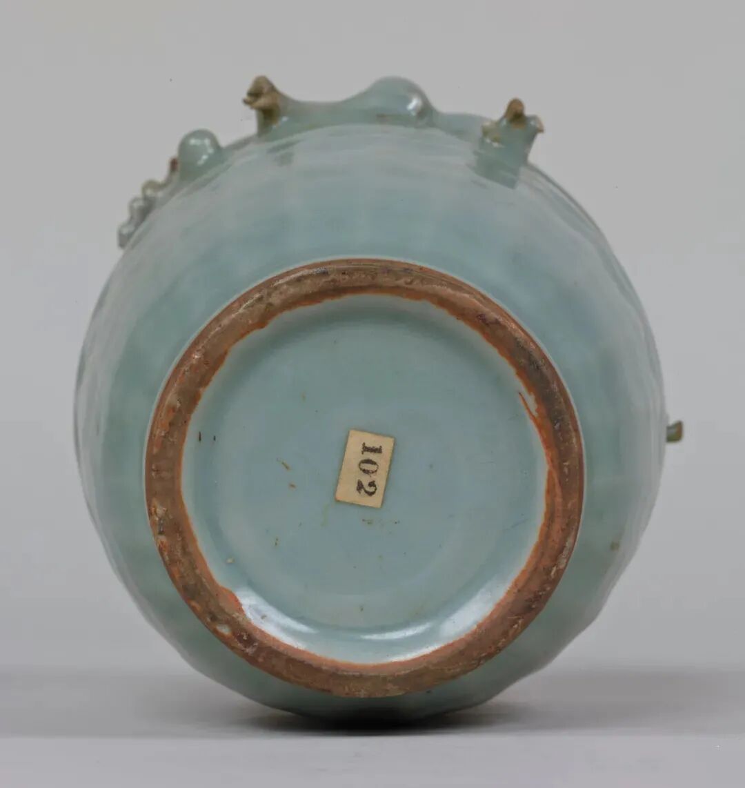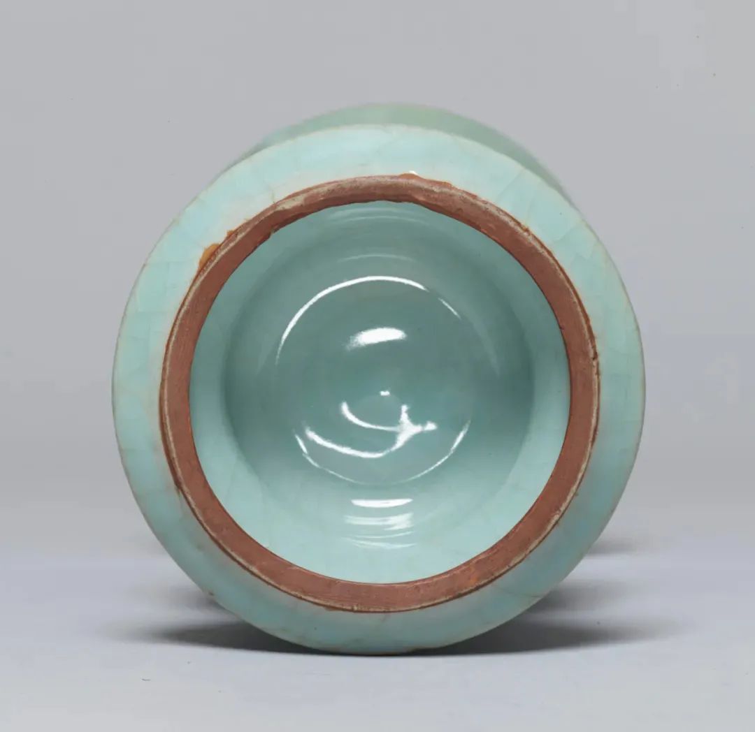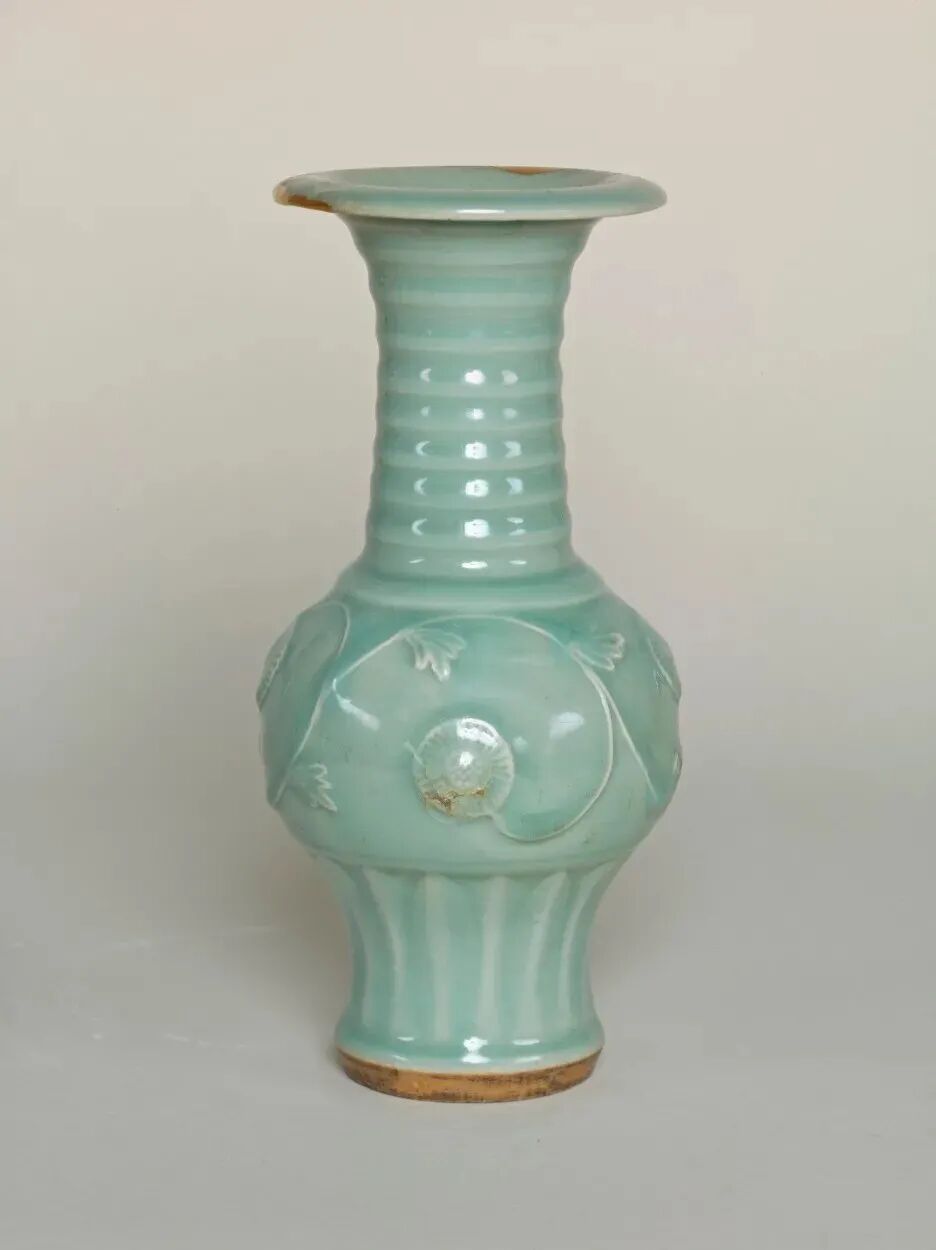 该器虽未标注年代,其时代特征鲜明,可视为元代龙泉烧制。其颈部中段以上被截去的现象,在土耳其伊斯坦布尔托普卡帕皇宫博物馆所藏的龙泉青瓷中亦多有所见,是当地根据本土饮食习俗及审美风尚对器物进行再加工和修饰所致,不过也有可能是被截去部分破损较严重所致。
