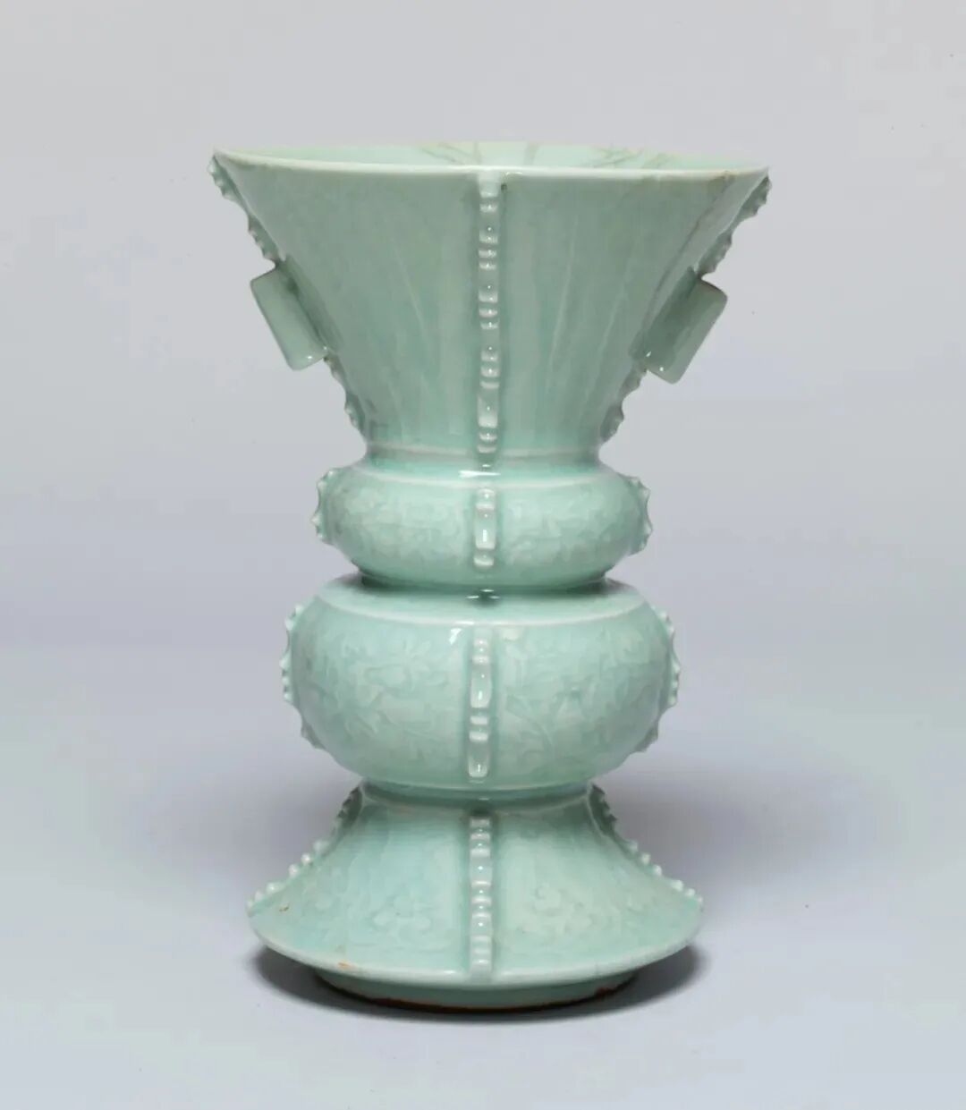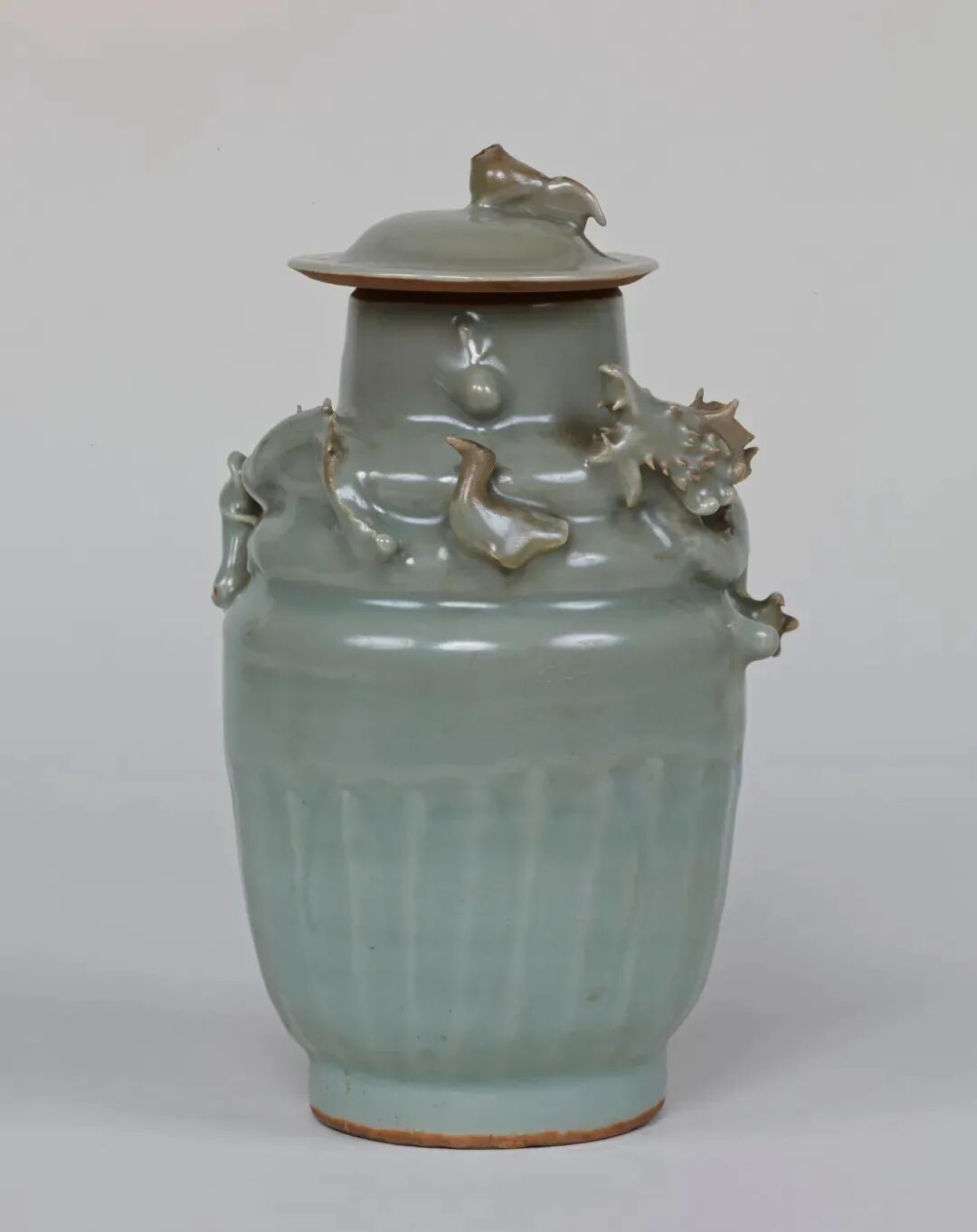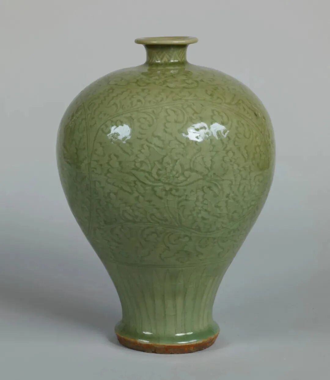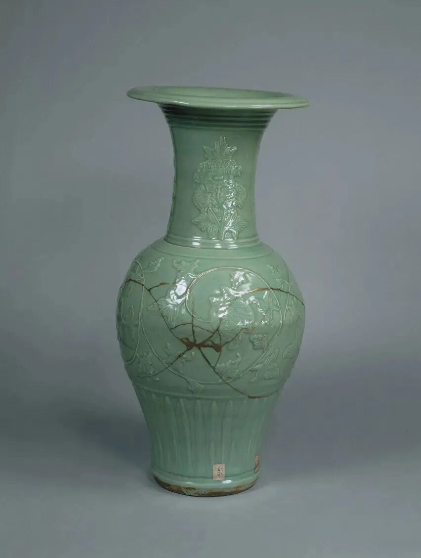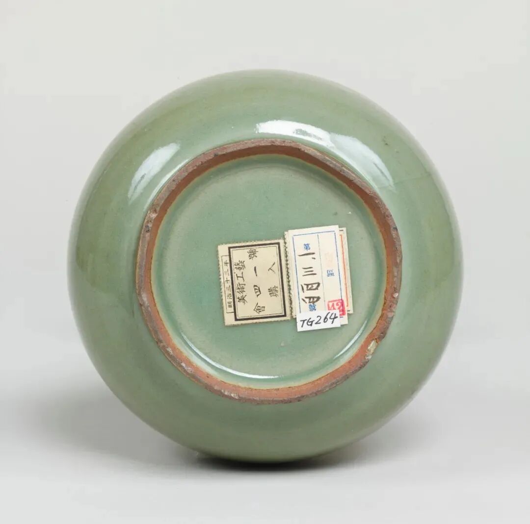 该器重量超过13公斤,是明代龙泉大器的典范。这类大型花瓶在日本是受寺院等珍视的“重宝”。