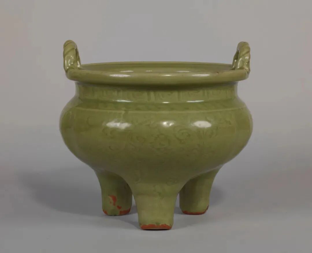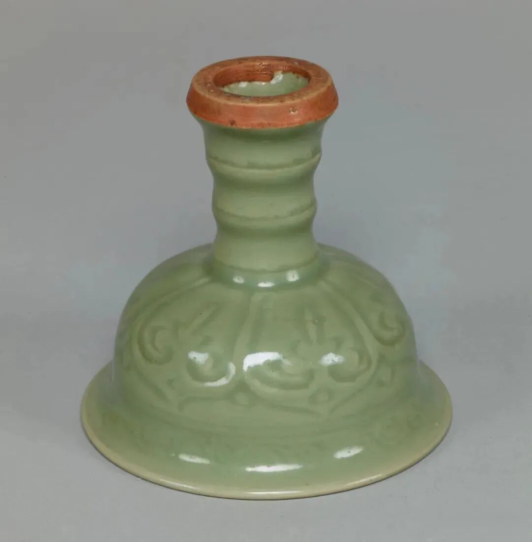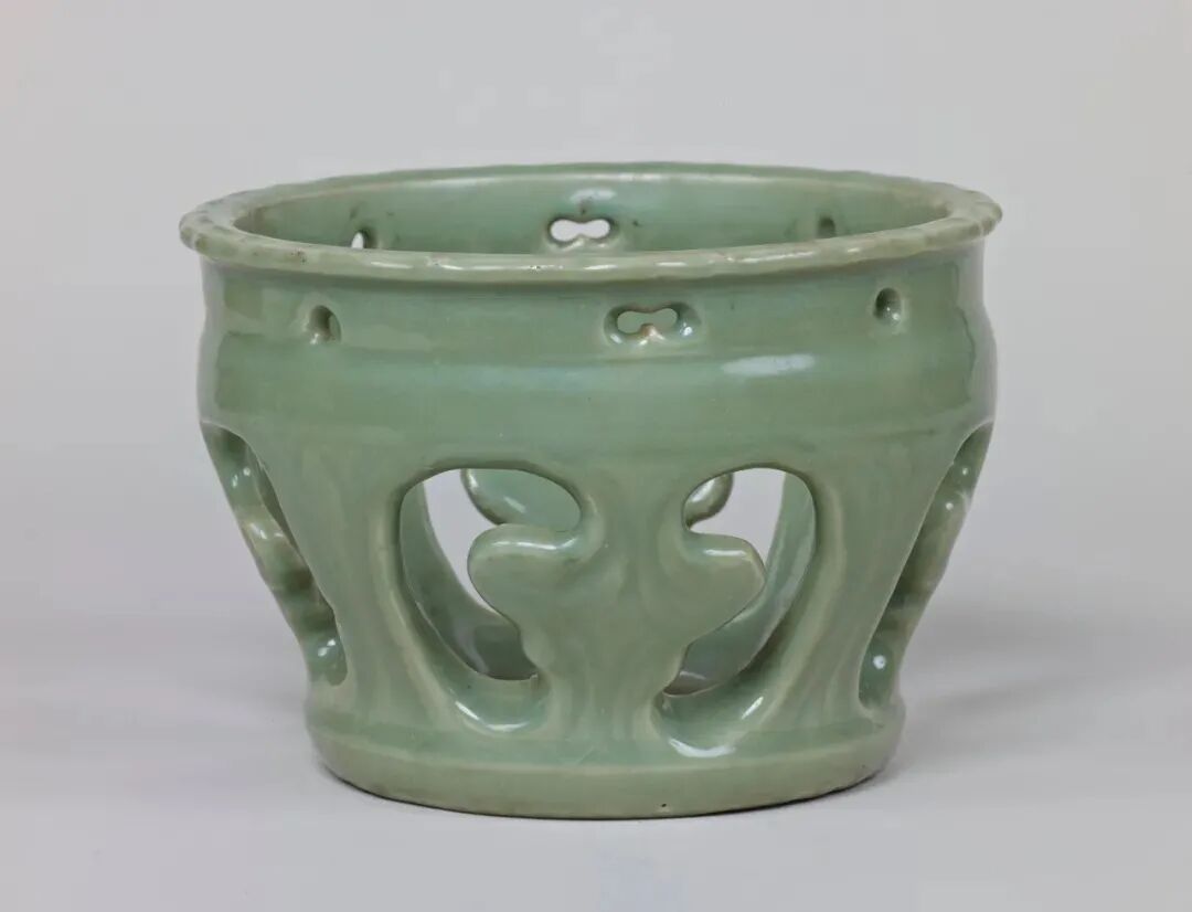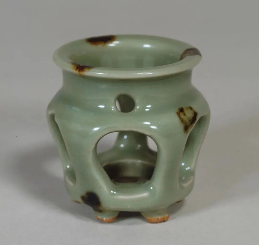 此类底部开孔的龙泉窑樽式炉多见于明代制品。