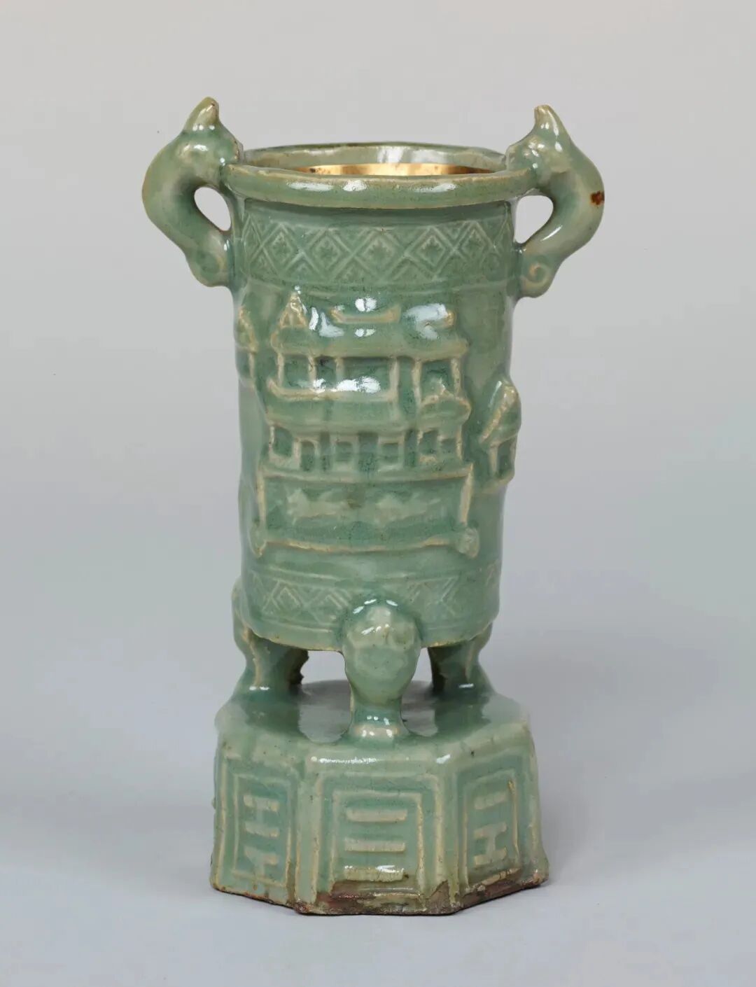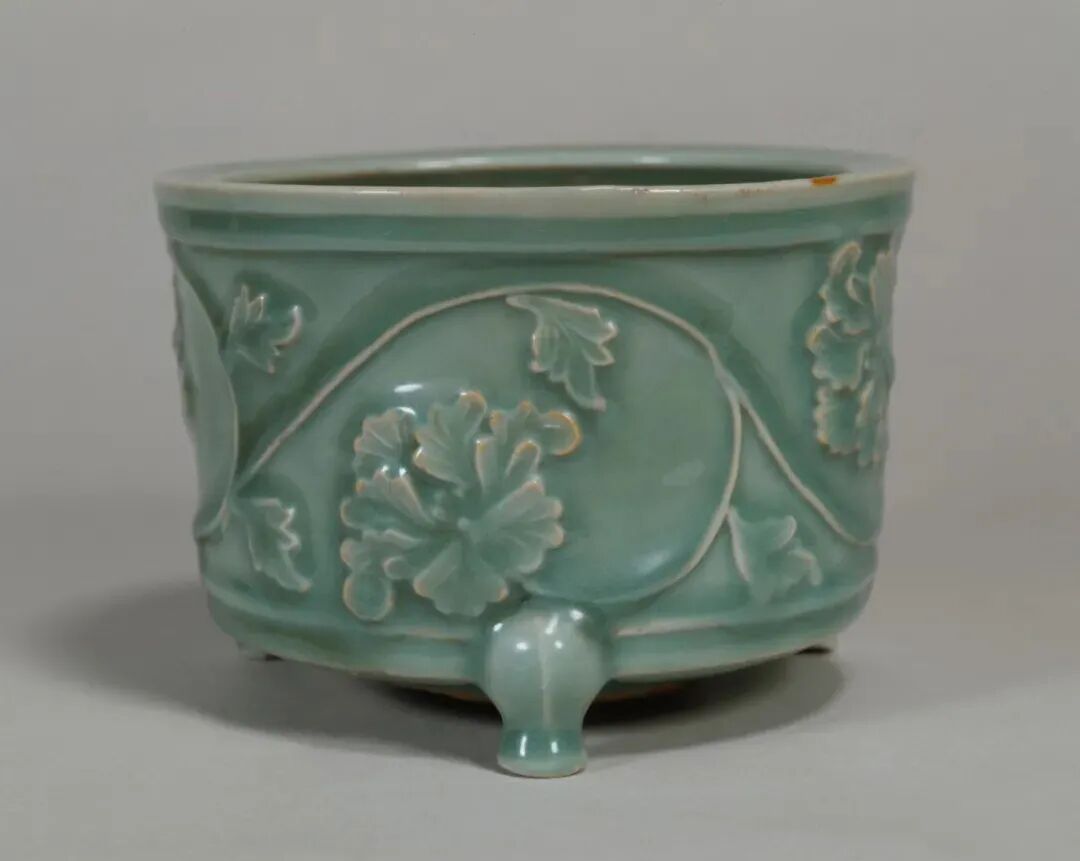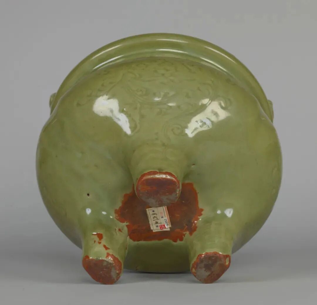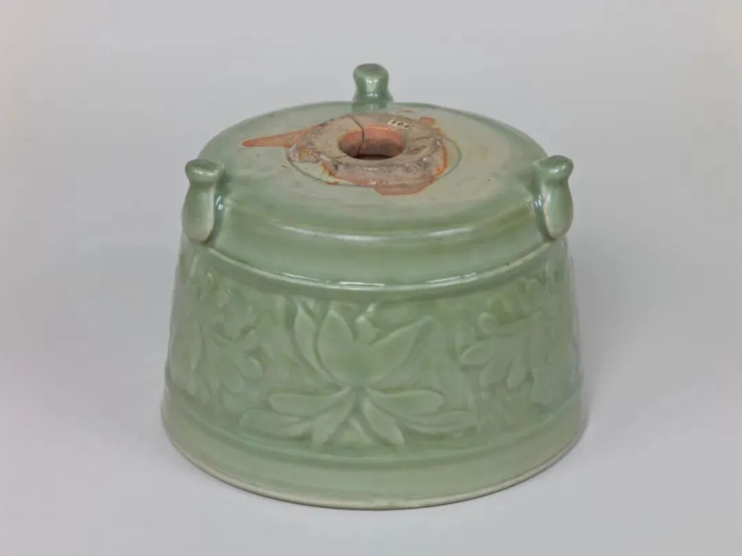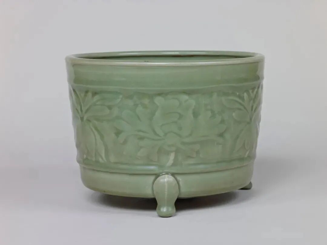 此类底部开孔的龙泉窑樽式炉多见于明代制品。
