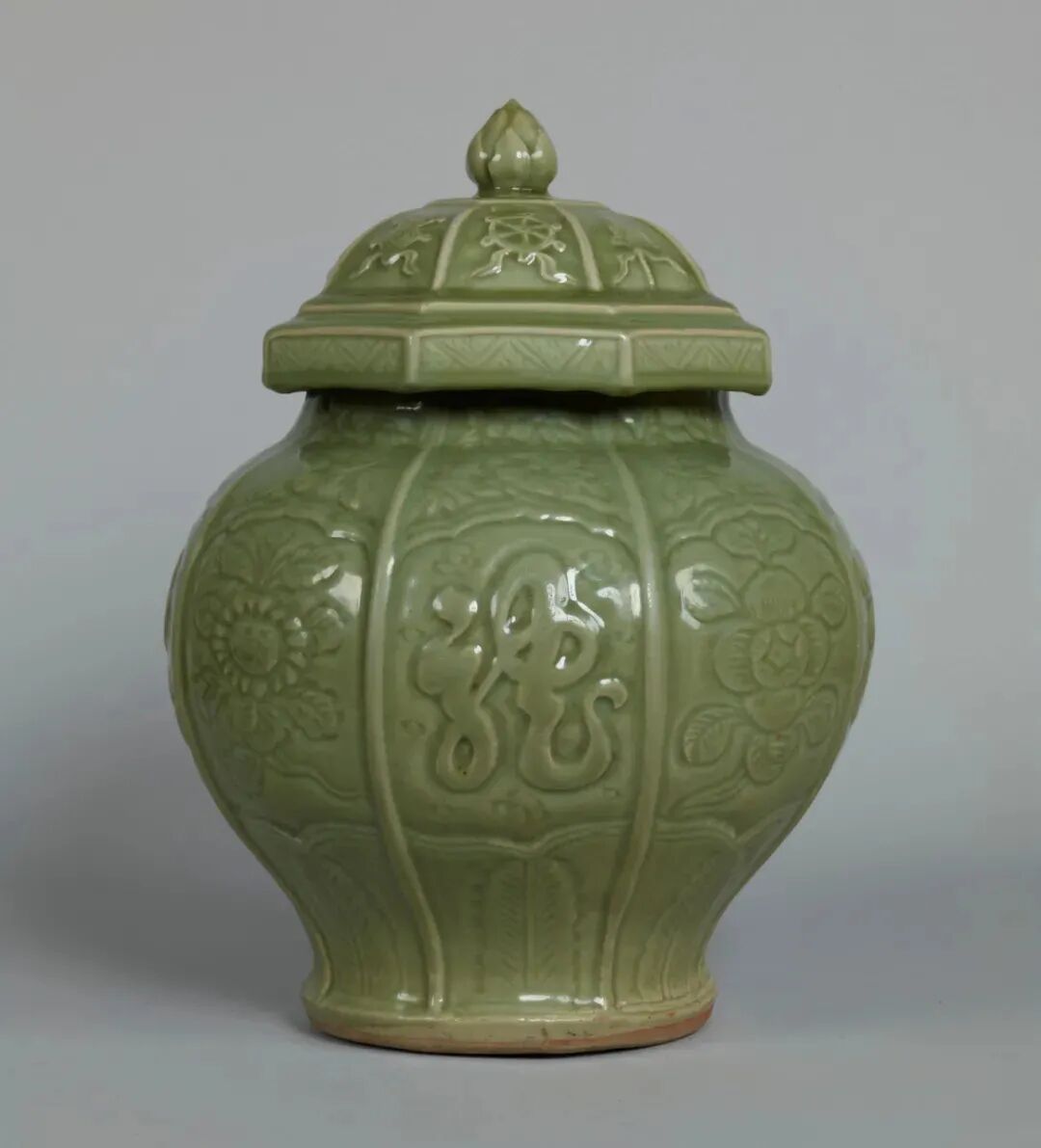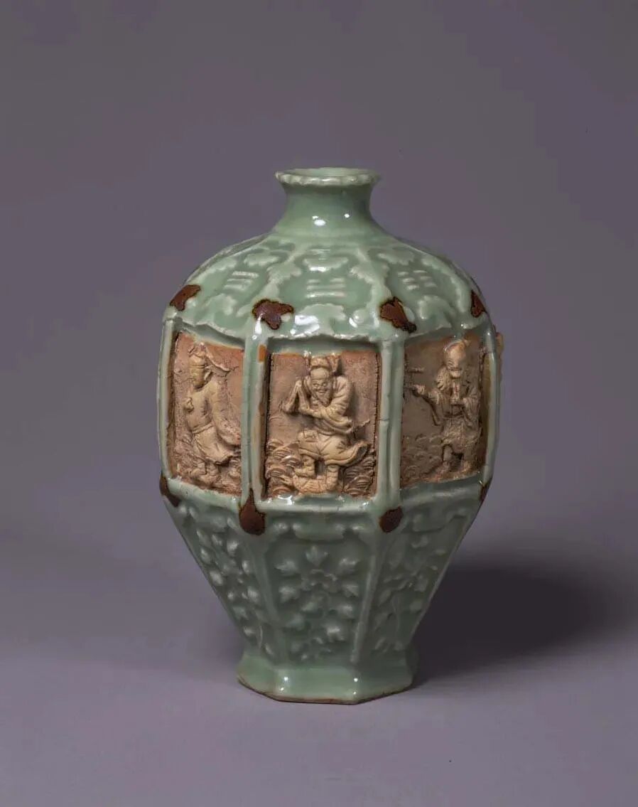 元~明 青磁鉄斑八仙文八角瓶