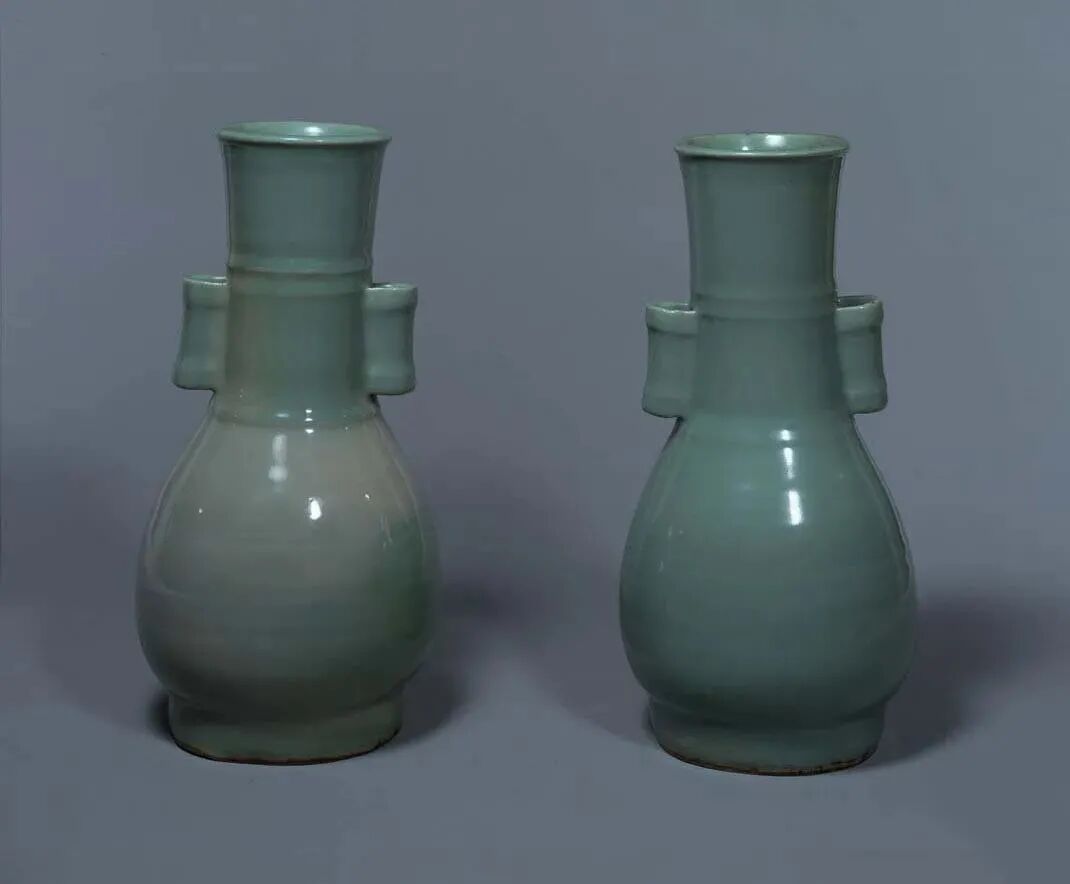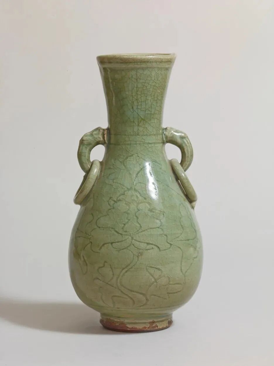 龍泉窯劃花双耳瓶