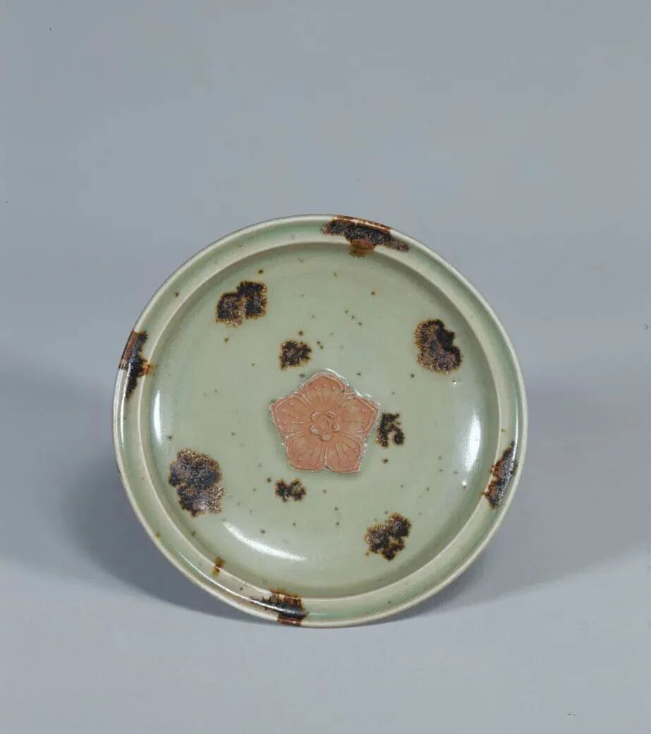 元 青磁鉄斑文皿