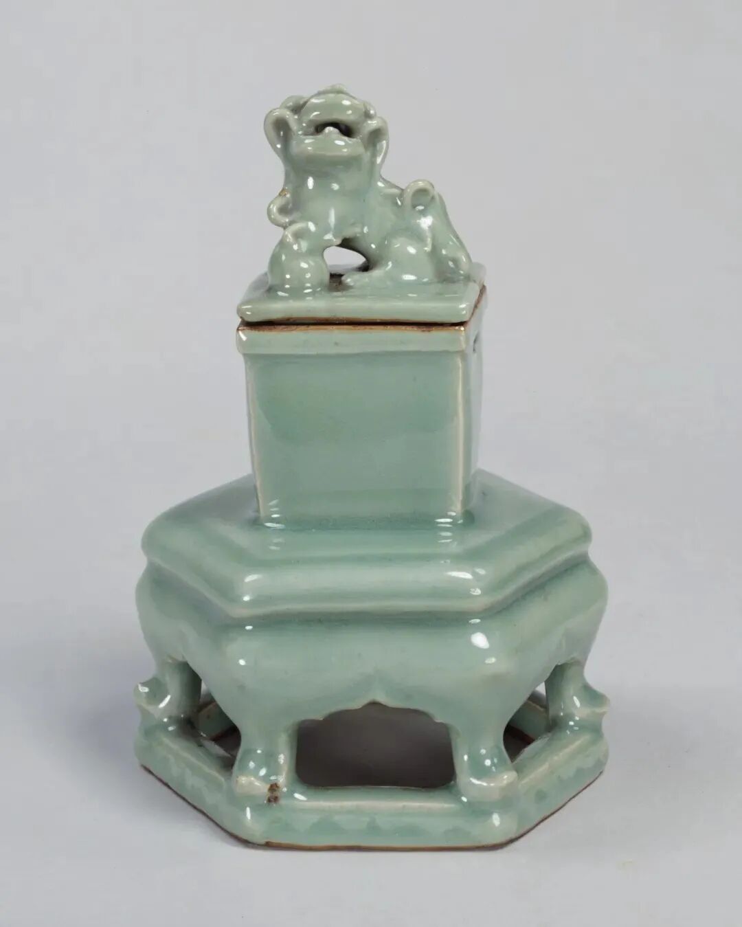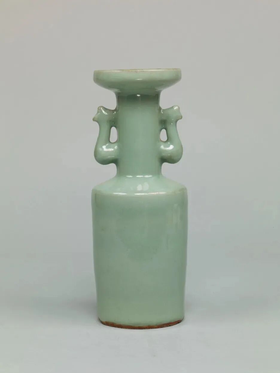 据我国相关出土资料显示,此类尺寸小巧,具有仿家具风格的小器座,多流行于元代,一般用于置放小瓶子。1984年青田县鹤城镇窖藏出土的一件带座长颈吉字瓶即为一例,龙泉市博物馆也有相关藏品。(参阅朱伯谦《龙泉窑青瓷》页192~193)