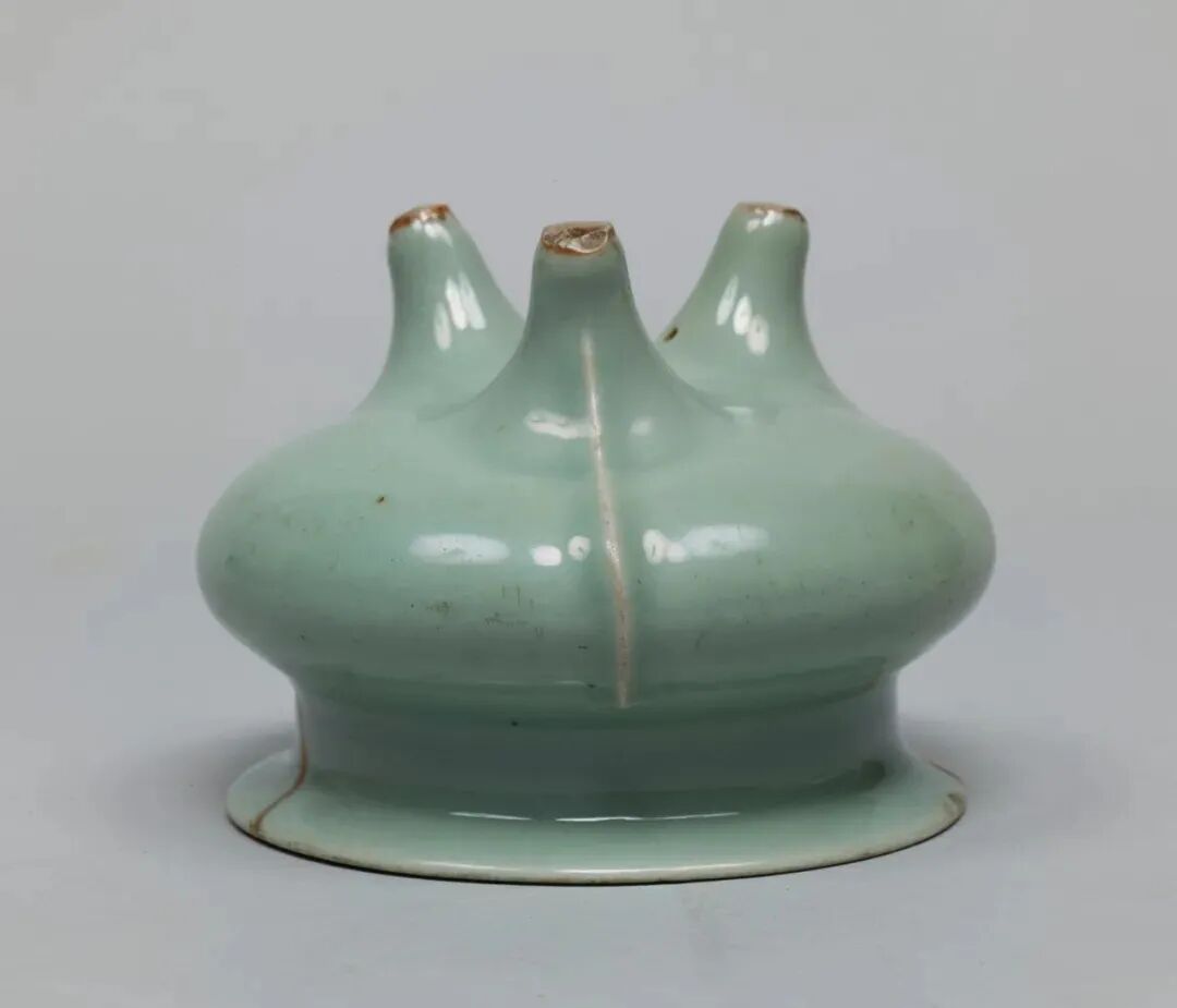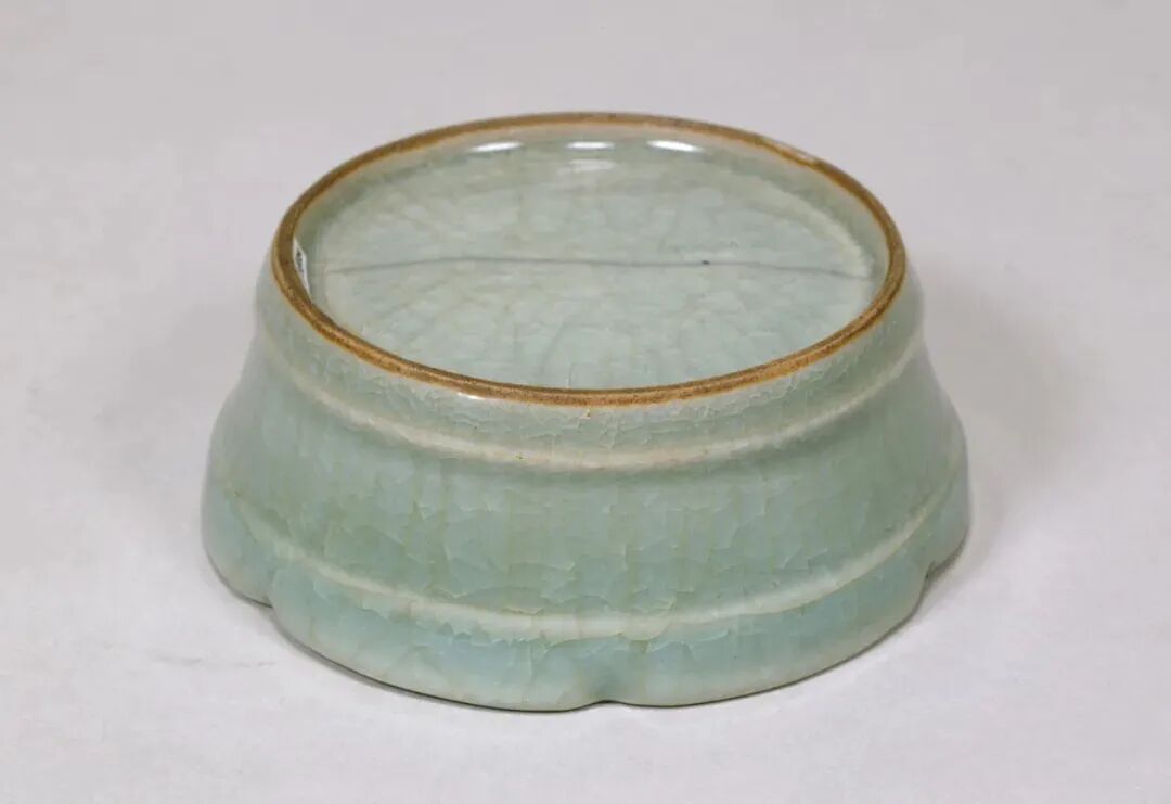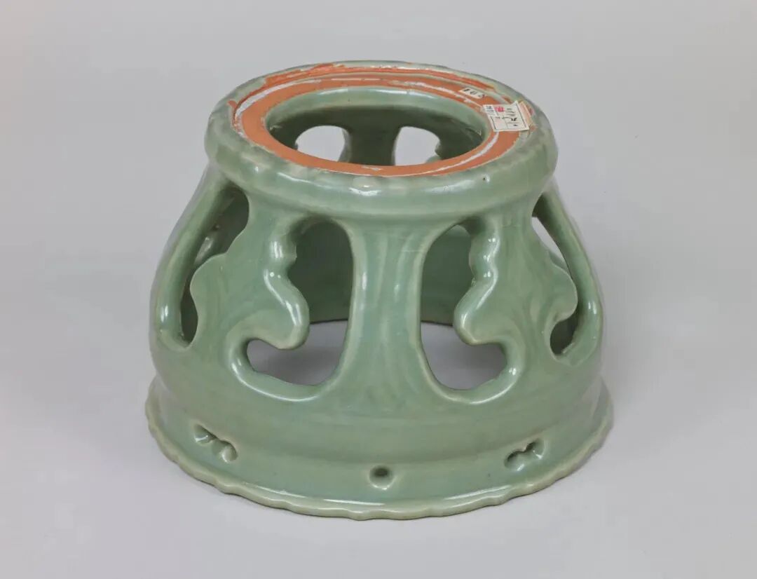 该器座胎釉特征与明初龙泉官窑器非常接近。《龙泉大窑枫洞岩出土瓷器》页146,图版107器座被纳入“永乐官器”。