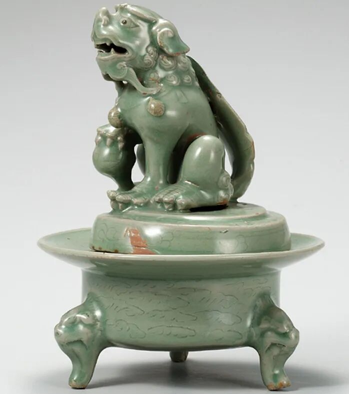 有学者对中国出土的高丽瓷器进行了梳理,发现12世纪遗迹里出土的高丽青瓷都是素面或刻划花装饰的,13世纪以后才出现镶嵌青瓷,最早的镶嵌青瓷出土的点是南宋临安城遗址的恭圣仁烈皇后宅遗址。这从另一个角度印证了高丽镶嵌青瓷出现的时间。以上例证大多属于精致的镶嵌青瓷,说明高丽镶嵌青瓷在13-14世纪时处于生产的盛期,至少传入中国的时间主要在这一阶段。