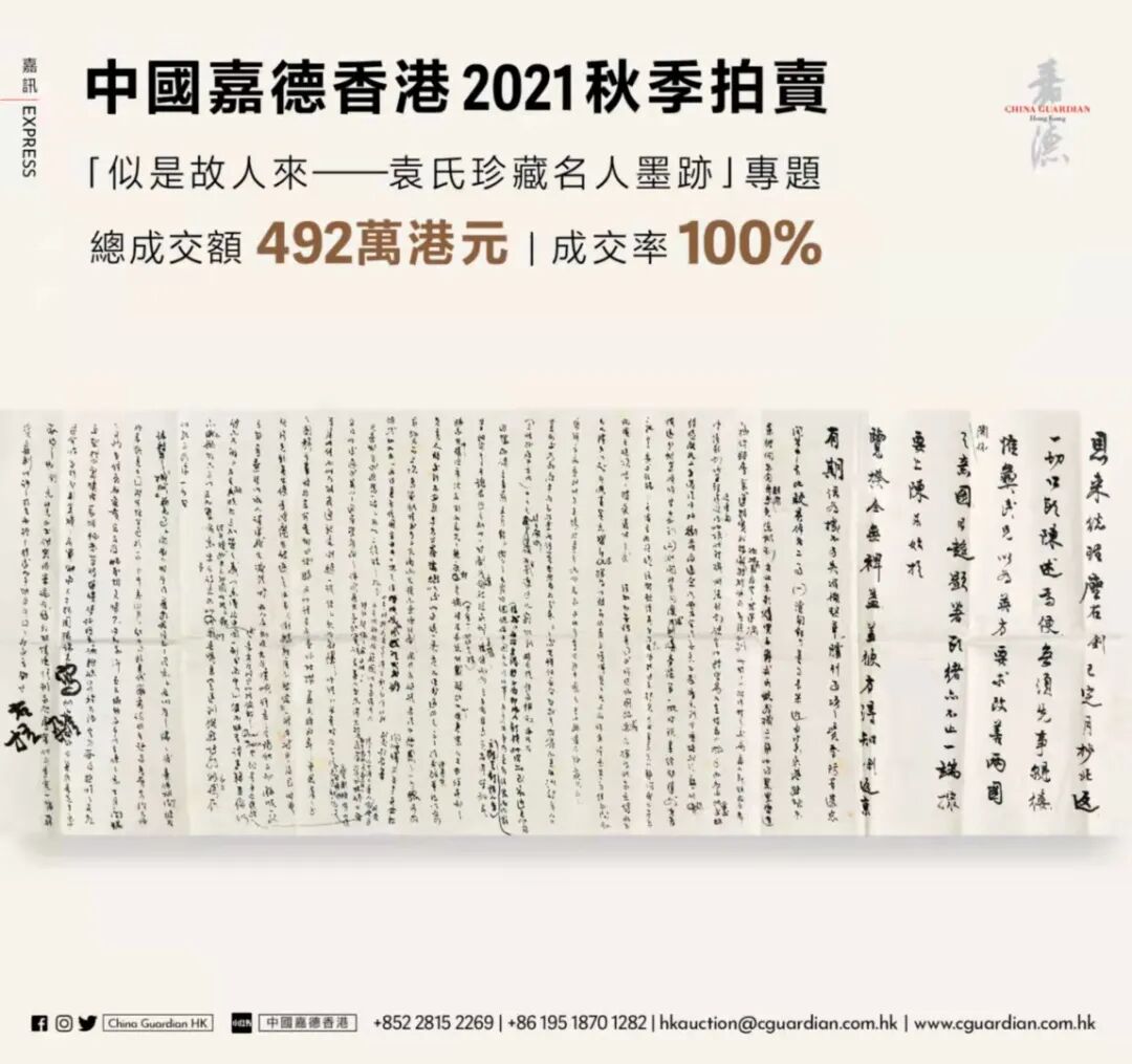 风雨贵人来,感恩每一位线上点击线下举牌的真切支持,香港书画团队在快速成长,京港联动的模式也在不断完善,期待明年嘉德香港的十年大庆可以港岛欢聚。」