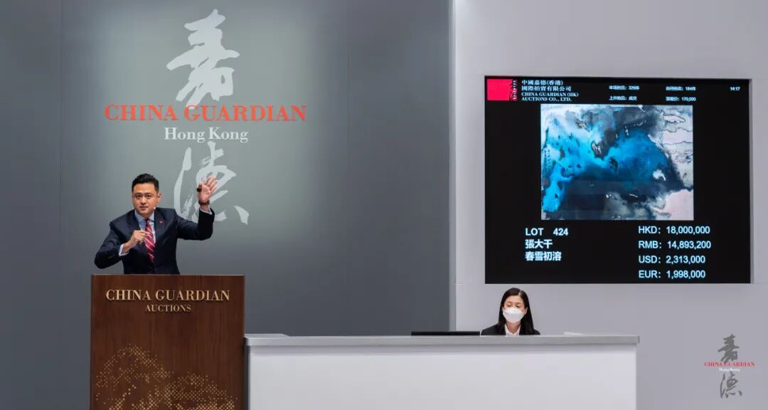 Our Hong Kong auction has been growing at a rapid pace, despite the fact that the border has been closed since early 2020. Typhoon Signal No. 8 was hoisted on the first day of the Autumn Auctions Preview, however, we were honoured to have welcomed a large crowd of local collectors and visitors even under such severe weather conditions. T8 storm signal came into effect once again on the first day of the Autumn Auctions, but we were also pleased to have witnessed robust online and telephone biddings by collectors worldwide - the first lot realised over HK$ 10 million was sold in the first hour, 2 World Auction Records were established in the first four hours, and Day 1 concluded with a white-glove sale. On Day 2, another World Auction Record was set for Dong Qichang’s album of calligraphy. The sales of Chinese Paintings and Caligraphy as well as Asian 20th Century and Contemporary Art both fetched a total of over HK$ 100 million, and the sale of Classicial Chinese Furniture totalled HK$ 23 million with only 25 lots. The sales of Ceramics and Works of Art realized a total of HK$ 227 million on Day 3, marking the highest total ever achieved for this category at China Guardian HK. The Autumn Auctions ended on a high note with a combined total of HK$ 555 million / US$ 71 million. Special thanks to our clients and everyone for your trust and support, as you are the ones who have made this Autumn Auctions so special. We will continue our global journey in search for the utmost excellence, meanwhile, looking forward to seeing you at the Spring Auctions next April!
